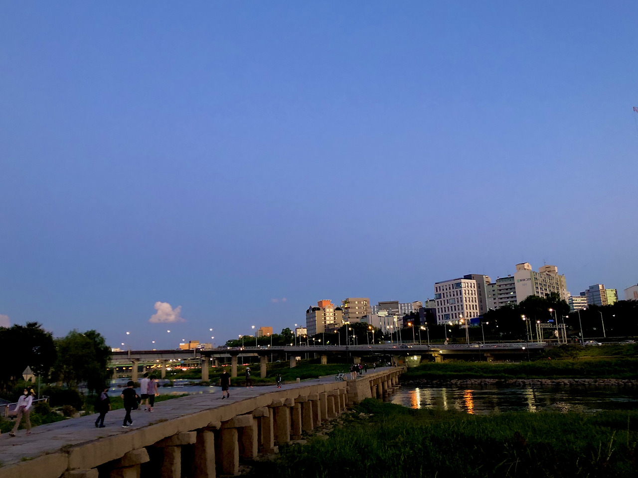 한참을 맥없이 있다가 몸을 일으켜 청계천을 따라 오래, 아주 오래 걸었다. 마음먹고 걷기 시작한 것은 아니지만 걷다 보니 하나의 도전이 되어 끝까지 걸었다. 걷고 있는 내 몸이 느껴졌다. 점점 아파오는 발바닥과 뻐근해지는 다리의 감각을 바라봤다. 한강이 보일 때까지. 시야가 하늘색에서 파란색으로, 장미꽃잎 띄운 홍차 색으로, 물 탄 듯 연한 남색으로 변해가는 것을 지켜보다 가느다란 초승달을 만날 때까지. 이제 막 피어난 얇은 달조각은 금세 지평선 너머로 사라졌다. 왼편 하늘에는 아주 밝은 별이 떴다. 저 별을 보라고 말했다면 많은 사람들이 그건 인공위성 아니냐고 했을 정도로 밝은 별이었다. 그게 진짜로 뭐였는지는 별로 중요하지 않다. 하지만 그 날 토성과 목성을 본건 확실했다. 별이 잘 보이는 곳에 살고 있는 이에게 지금 토성과 목성이 떴다고 연락했다. 그는 맞는 것 같다고 대답하며 같이 남쪽 하늘을 바라보았다. 그와 같이 있으면서 따로 있었다. 긴 걸음을 조금 빠르게 걸으며 누구도 만나지는 않았지만 수많은 사람들을 마주쳤다. 다들 혼자이거나 둘셋이었고 걷거나 뛰고 있었고 아무 생각도 안 하거나 어떤 생각에 골몰하고 있었다. 그렇게 잘 모르는 사람들 사이에 아무렇게나 섞여서 흘러가는 대로 걸으면서 근 며칠간의 작은 실험에 물음표가 아닌 온점을 찍었다. 그리고 피곤한 탓인지 그날 밤은 팔다리를 꼼지락대며 대자로 만들어 시위 대열을 짜기도 전에 깊은 잠에 빠졌다.