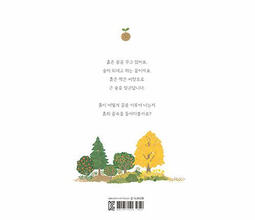 모든 것을 품어주는 흙. 흙은 자신의 마음속에 또 다른 꿈을 품고 있습니다. 바로 숲이 되고 싶은 꿈이지요. 그래서 흙은, 숲이 되는 아주 작은 꿈을 한 걸음씩 틔워 나갑니다. 씨앗을 품고, 풀을 키우고, 덤불을 키우고, 나무를 기르지요. 흙 속에 심는 꿈은 작은 씨앗들. 새도, 다람쥐도 땅속에 씨앗을 보내줍니다.