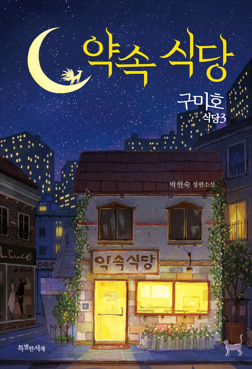 식당 이름이 왜 <약속 식당>일까요? 표지를 보고 가장 먼저 든 생각은, ‘저렇게 불을 밝히고 누구를 기다리는 것일까?’였습니다. 주변 아파트의 불빛이 별처럼 빛나고, 초승달 위에는 구미호가 앉아 있습니다. 그리고 환히 불 밝힌 식당은 누구를 기다리는지 애잔함을 뿜어내지요.