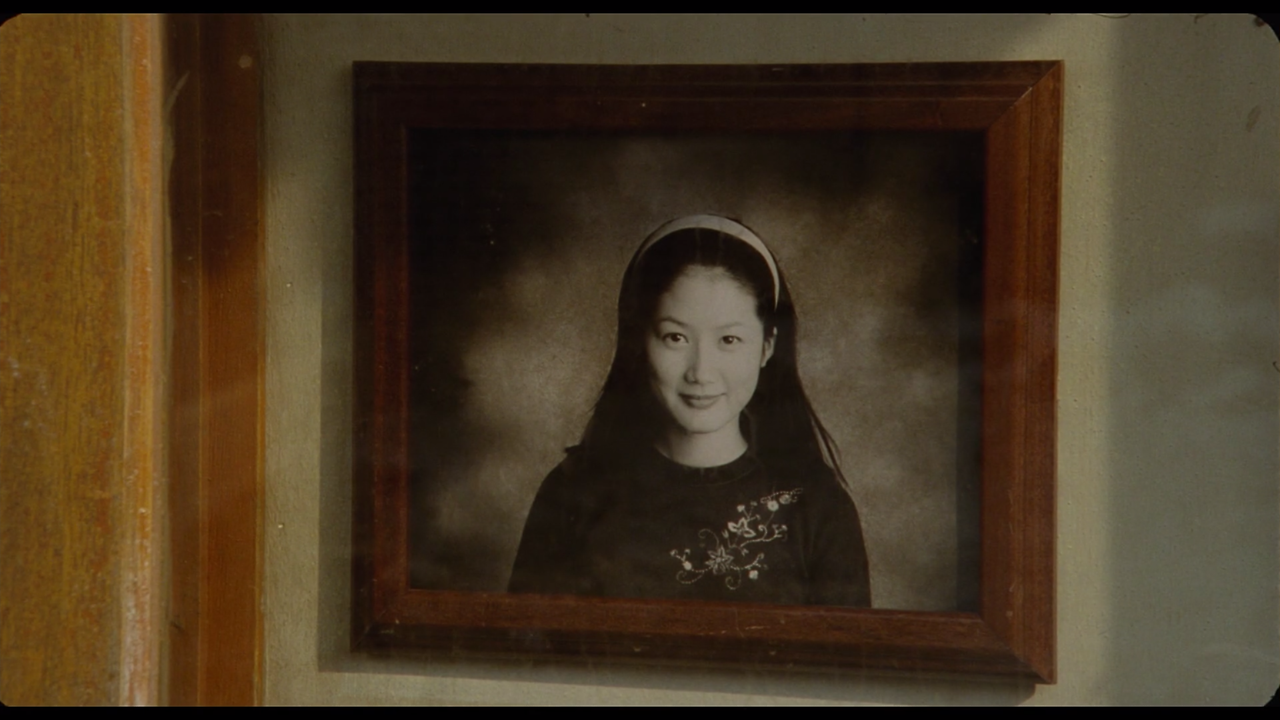 비슷한 구도의 장면이 영화의 후반부에도 나온다. 마지막 데이트 장면에서 둘은 밤에 골목길을 걷는다. 카메라의 구도나 움직임이 위의 장면과 유사하다. 하지만 이번에는 카메라의 움직임이 빠르지 않다. 천천히 걷고 있는 둘을 따라가면서 팔짱을 끼는 것만으로도 설렘이 느껴지는 느린 사랑의 모습을 카메라는 캐치하여 보여준다. 여기서도 둘은 화면의 오른쪽으로 향하지만 이후 둘은 데이트를 하지 못한다. 배경도 캄캄한 밤이라 어두운 느낌을 주고 어찌보면 사랑이 끝난 것 아닌가 싶지만, 앞서 말했듯 정원의 사랑은 죽음 이후에도 유효하다. 어두운 죽음 같은 밤을 걷지만 마음속에 사랑을 간직하며 떠나는 것이다. 어쩌면 이래서 귀신 이야기를 했을 수도...