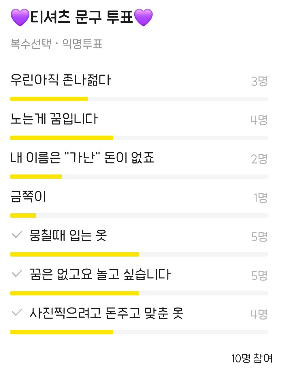이번에는 문구를 투표해서 제작하기로 했다.