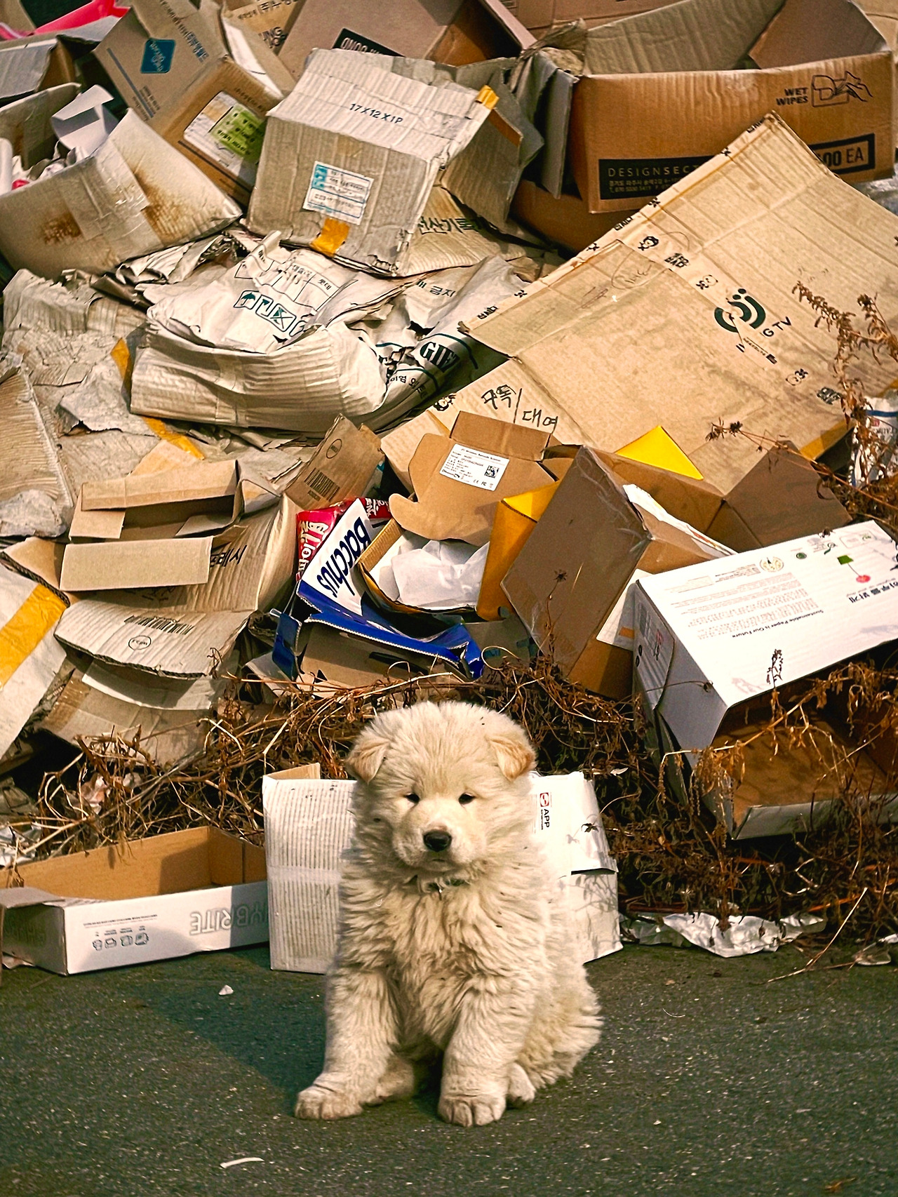 아직 추운 날씬데 너는 따듯하게 입어서 좋겠다. 어쩜 그리 토실토실해? 코가 짱 두꺼워. 나? 무서운 사람 아니긴 한데, 이렇게 사람을 무서워하지 않아도 돼? 엄마는 어딨어? 엄마 저기 있네. 너 혼자가 아니구나? 너랑 똑같은 친구가 한 명 더 있네? 너를 만나러 간 건 아니지만 너를 만나서 기분 좋은 하루였어. 아, 마지막으로 사진 하나 찍어줄까? 거기 서 봐. 멋진데? 너는 쓰레기장에 살아? 다음에 또 보자. 왜? 또 모르지. 우리가 다시 만날 수도