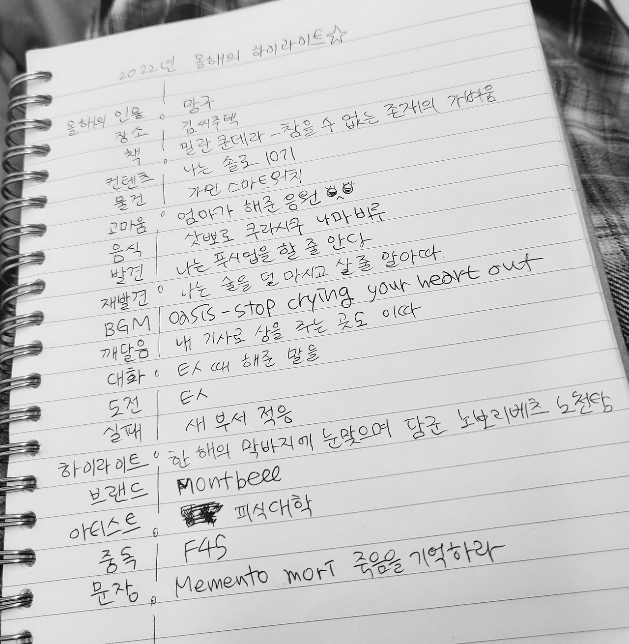 364일을 하루에 돌아보고 나만의 시상식을 해보자니 생긴 '올해의 깨달음'은 아이러니하게도 '대부분의 일들은 기록해두지 않는 이상 기억이 잘 나지 않는다'였다.