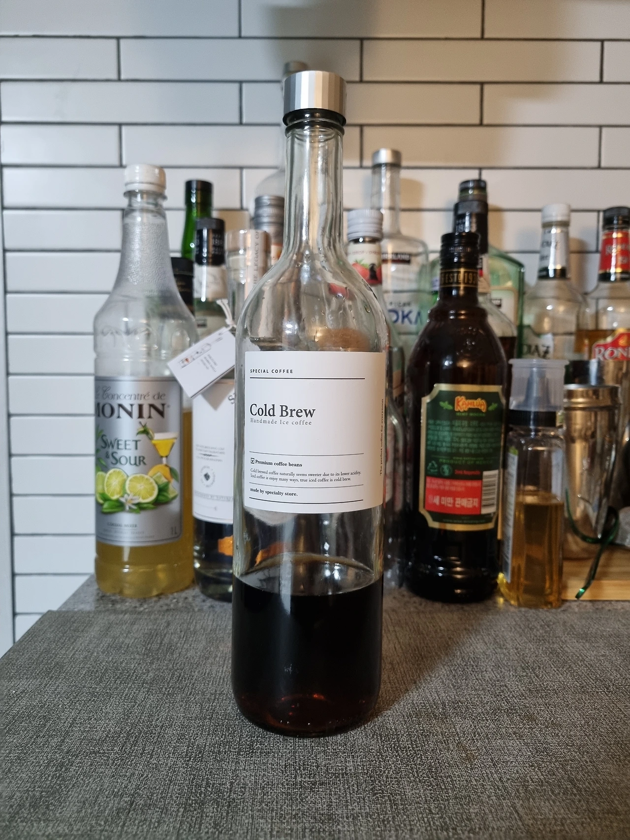 나는 집에 깔루아가 없다 (옆에 보이는 깔루아는 커피 리큐르가 아닌 민트모카 깔루아다). 대신 유튜브를 보고 직접 만든 커피 리큐르가 있다. 내가 직접 내린 콜드브루로 만들었다 보니 깔루아랑은 다른 새로운 맛을 기대했었다. 막상 만들고 나니 깔루아와 놀라울 정도로 똑같은 맛이었다. 만드는 수고를 고려했을 때 다음에는 그냥 돈 주고 사야겠다.
