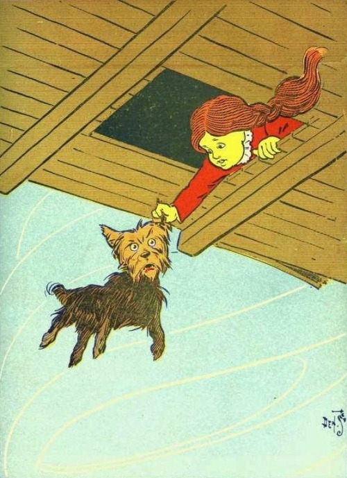 오즈의 마법사는 환상의 세계로의 무대 변환, 동료 획득, 모험, 집으로라는 기존의 모험동화의 클리셰를 비교적 잘 따르고 있는 작품입니다. 줄거리만 놓고 보면 50년 전에 먼저 등장한 이상한 나라의 앨리스와 비슷해 보이기도 하고, 또 어떤 면에선 ‘눈의 여왕(The Snow Queen-안데르센)에서 이웃집 동생을 찾아 험지로 나선 게르다(Gerda)의 모험이 생각나기도 합니다. 그러나 오즈의 마법사의 도로시는 지금까지 등장했던 여느 주인공과는 확연히 구분되는 무언가가 있습니다. 결핍을 앓고 있는 동료들을 모으고, 그들이 가지고 있는 장점을 살려 위기를 극복하고, 앞에 놓인 문제에 대해 스스로 해결점을 모색하는 등 적극적인 태도가 바로 그것입니다. 이상한 방 안에 갇히자 홍수가 날 정도로 통곡했던 앨리스와 달리 도로시는 하늘로 날아가는 집안에서 잠을 청했고, 나쁜 마녀에게 정면으로 맞서는 등 적극적이고 대담한 모습을 보여줍니다. 문제 해결 방식도 완전히 달라졌습니다. 지금껏 동화는 어려운 일이 닥치면 절대 힘이 나타나 평소 착하게 살았으니 내가 도와 주마하는 식으로 절대자에 의해 문제가 회피되는 게 일반적이었는데, 도로시는 보다 적극적이고 대담한 방식으로 스스로 문제를 해결해 나아갑니다.