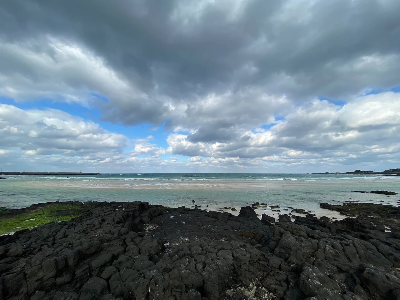 빌딩으로 가로막힌 도심에서 벗어나 탁 트인 바다를 보니 작년 한 해 동안 쌓인 답답함과 미련이 날아가는 것 같았다. 바다의 에메랄드 빛과 하늘의 푸른색, 그리고 해변 곳곳에 박혀 있는 현무암의 짙은 검은색이 그림 같았다.