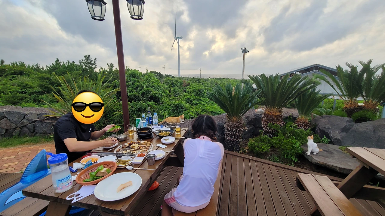석양이 제주 바다 밑으로 내려가고 전등 조명이 들어온다. 우리 식구 앉은 테이블 옆에 새끼 고양이 몇 마리가 기웃거린다. 흰색에 옅은 갈색 얼룩무늬가 예쁘다. 같은 빛깔의 어른 고양이가 저만치 뒤에 배를 깔고 앉았다. 네가 얘들 엄마구나. 딸아이는 이다음에 커서 캣맘이 되려나 보다. 캠핑장에서도 고양이 밥 챙겨주기를 자처한다. 나름대로 고양이를 배려한 원칙도 있다. 언젠가 내가 남은 음식을 캠핑장에 사는 고양이 앞에 던져주니 그러면 안 된단다. 반드시 접시에 담아서 줘야 한단다. 땅바닥에 주면 이물질도 같이 먹게 돼서 배탈이 난단다.