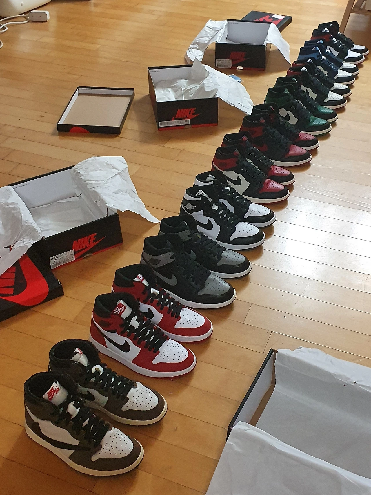 그게 두 번째 시작이었다. 한 켤레에서 그칠 수 없었다. 그래, 중고등학교 때 신었던 것들만 복각판으로 모아보자. 중고거래 사이트를 뒤졌다. 중고품이 아니라 신지 않은 신품으로 어렵게 구했다. 자극은 더 큰 자극을 견인한다. 10켤레만 채우자. 거기서 만족하지도 못했다. 마이클 조던 선수가 현역 때 직접 신었던 모델들만 모으자. 그러던 것이 그가 은퇴한 후에 출시한 제품까지 탐내게 되었다. 어느덧 70켤레가 넘었다. 미쳤다.