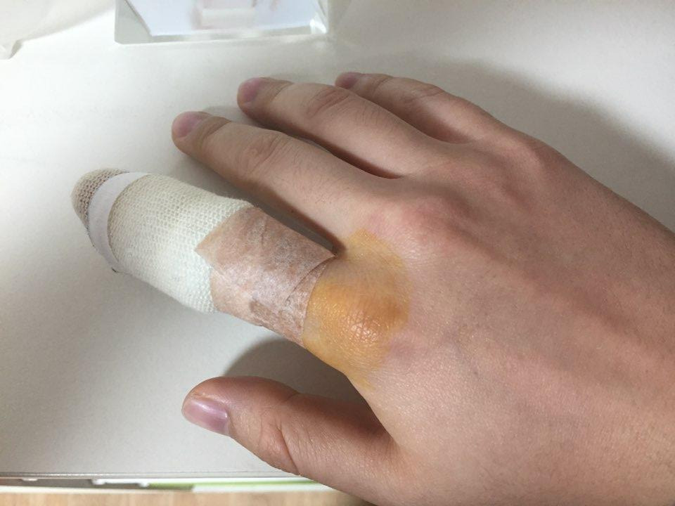 손가락은 이제 몇 바늘 꿰맨 자국만 희미하게 남았을 뿐이다.