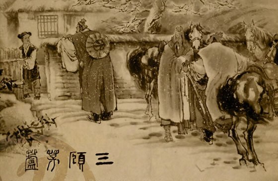 말이 쉬워 삼고초려지 20리나 떨어진 시골 마을에 세 번 찾아갔다. 심지어 눈보라가 몰아치는 날도 있었다. 세 번째 찾아갔을 때 유비는 낮잠을 자고 있는 제갈량이 깨어날 때까지 공손히 서서 기다렸다.