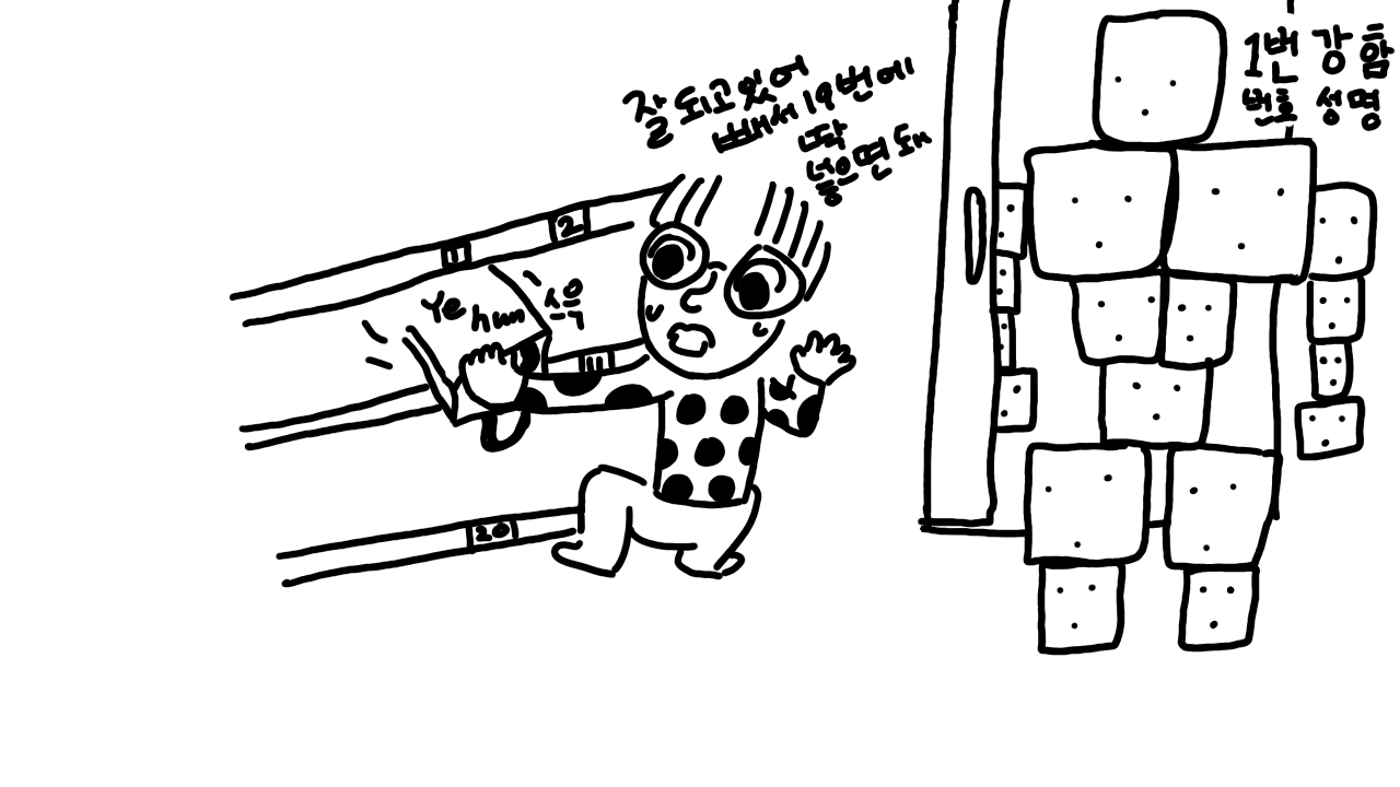 신발을 갈아 신고 교실 앞으로 갔는데 내 번호를 도통 모르겠어서