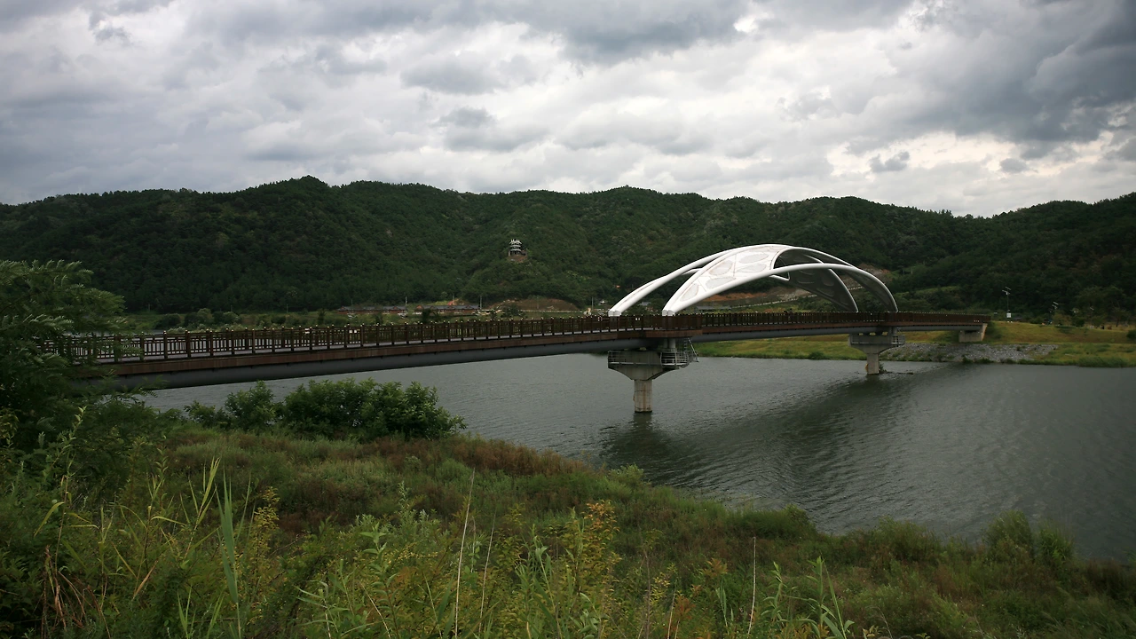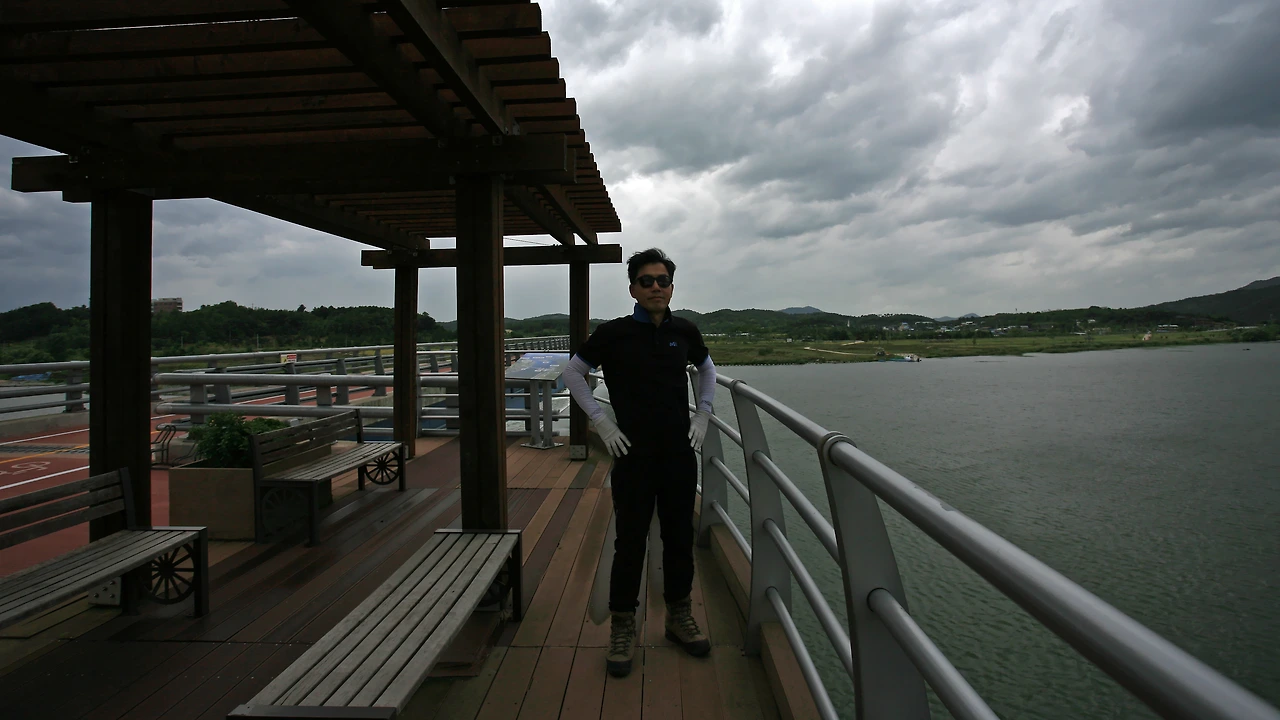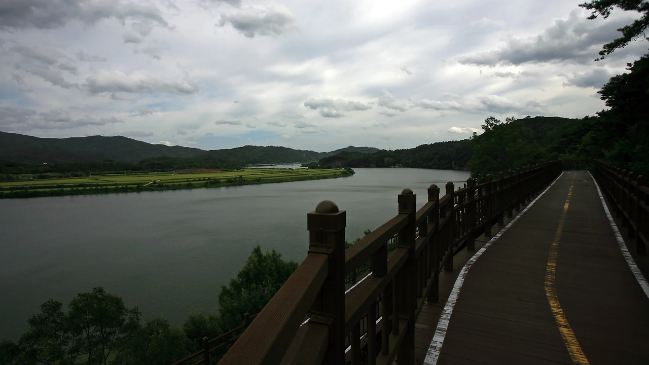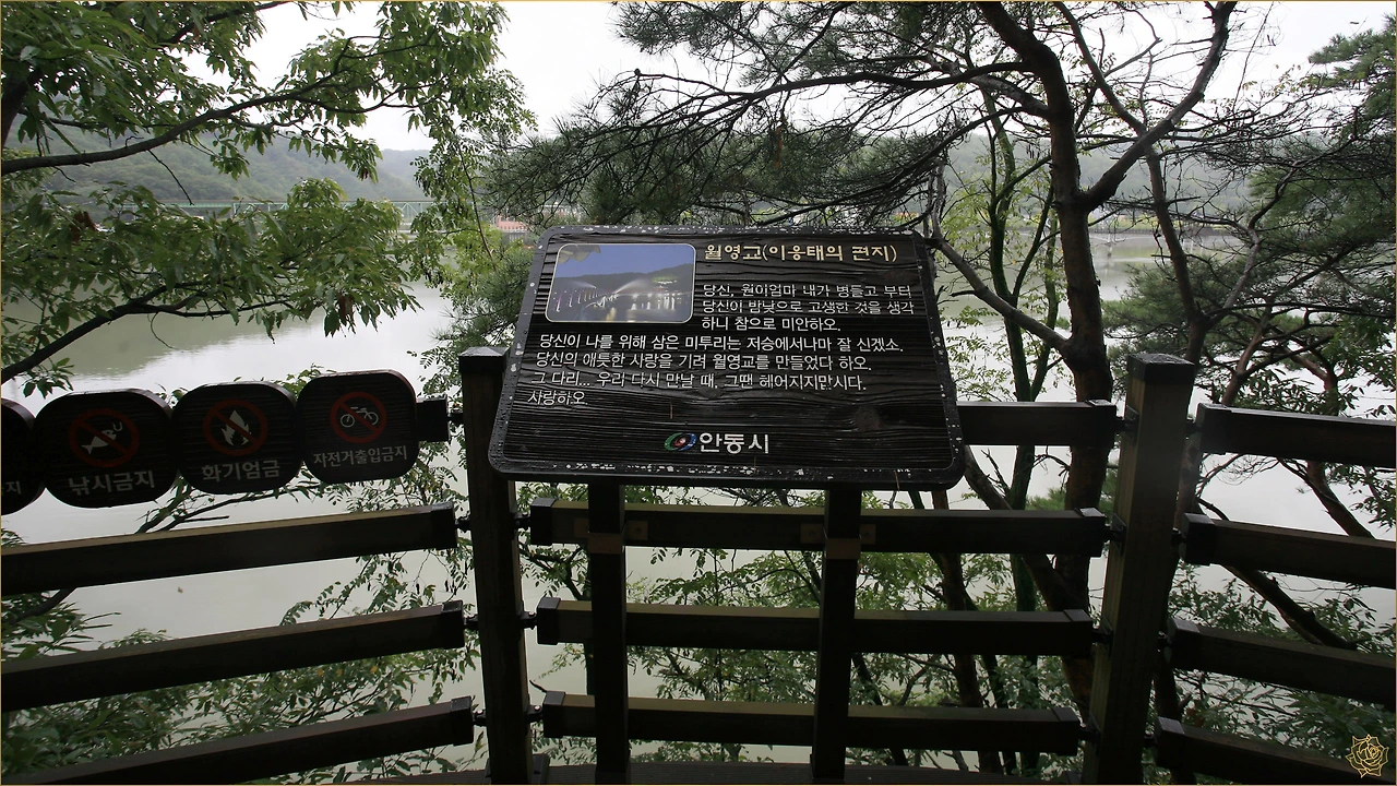 안동호를 돌아나와 다시 시내버스로 안동호 보조댐 아래에 있는 다리를 건너 아름다운 수변로를 따라 월영교까지 잔교棧橋를 걸은 후 부산행 무정차버스로 돌아옵니다.