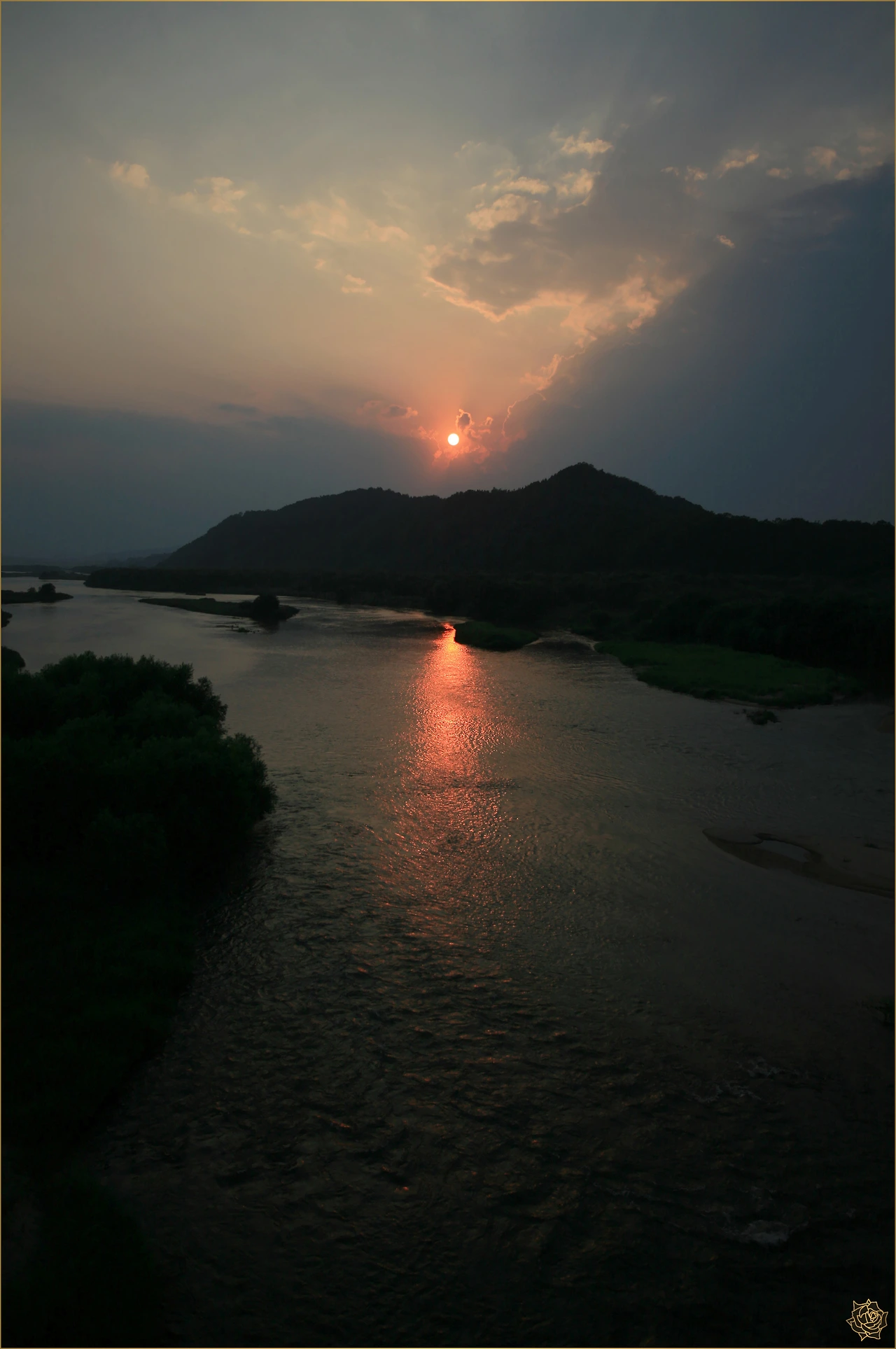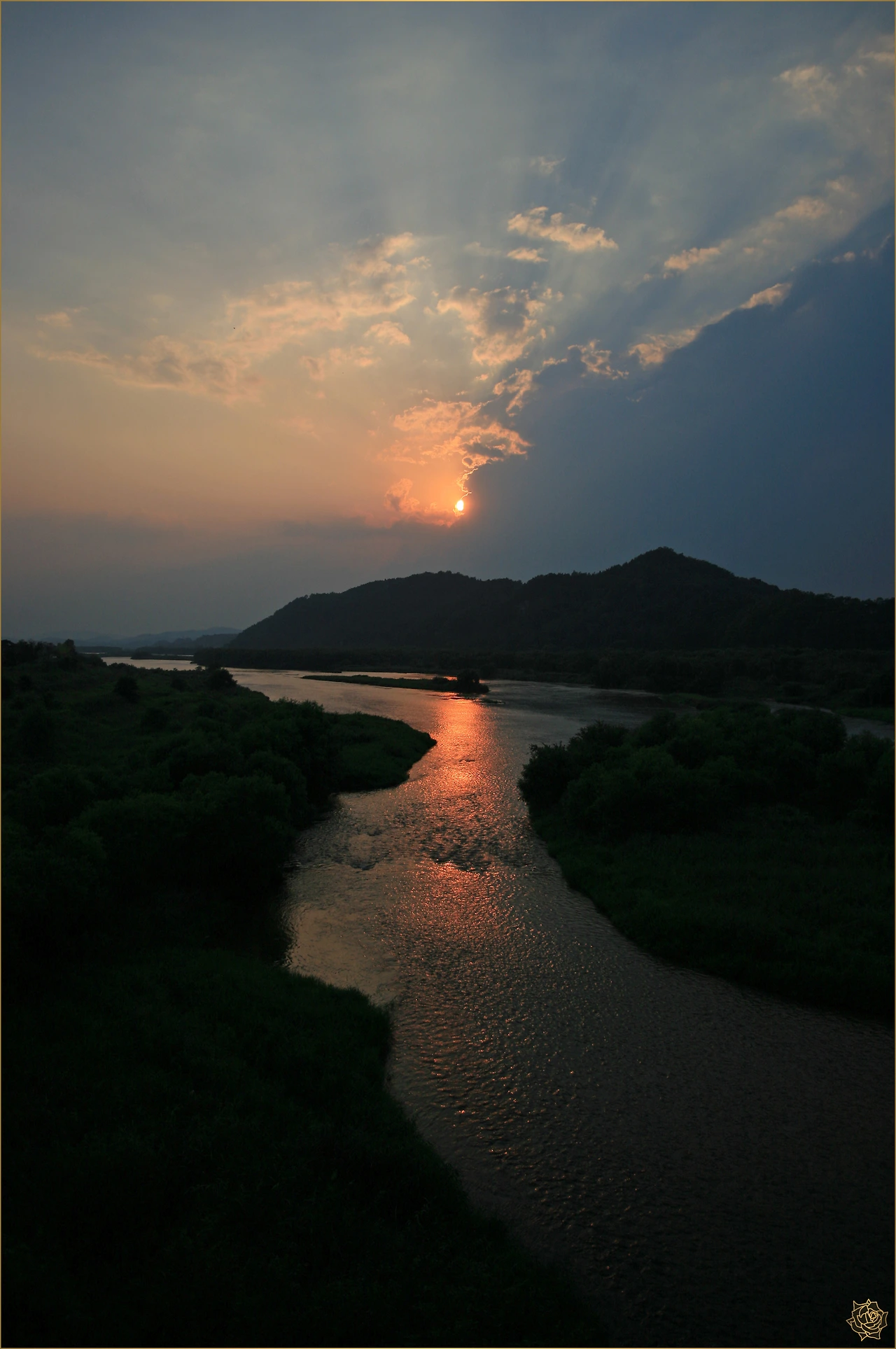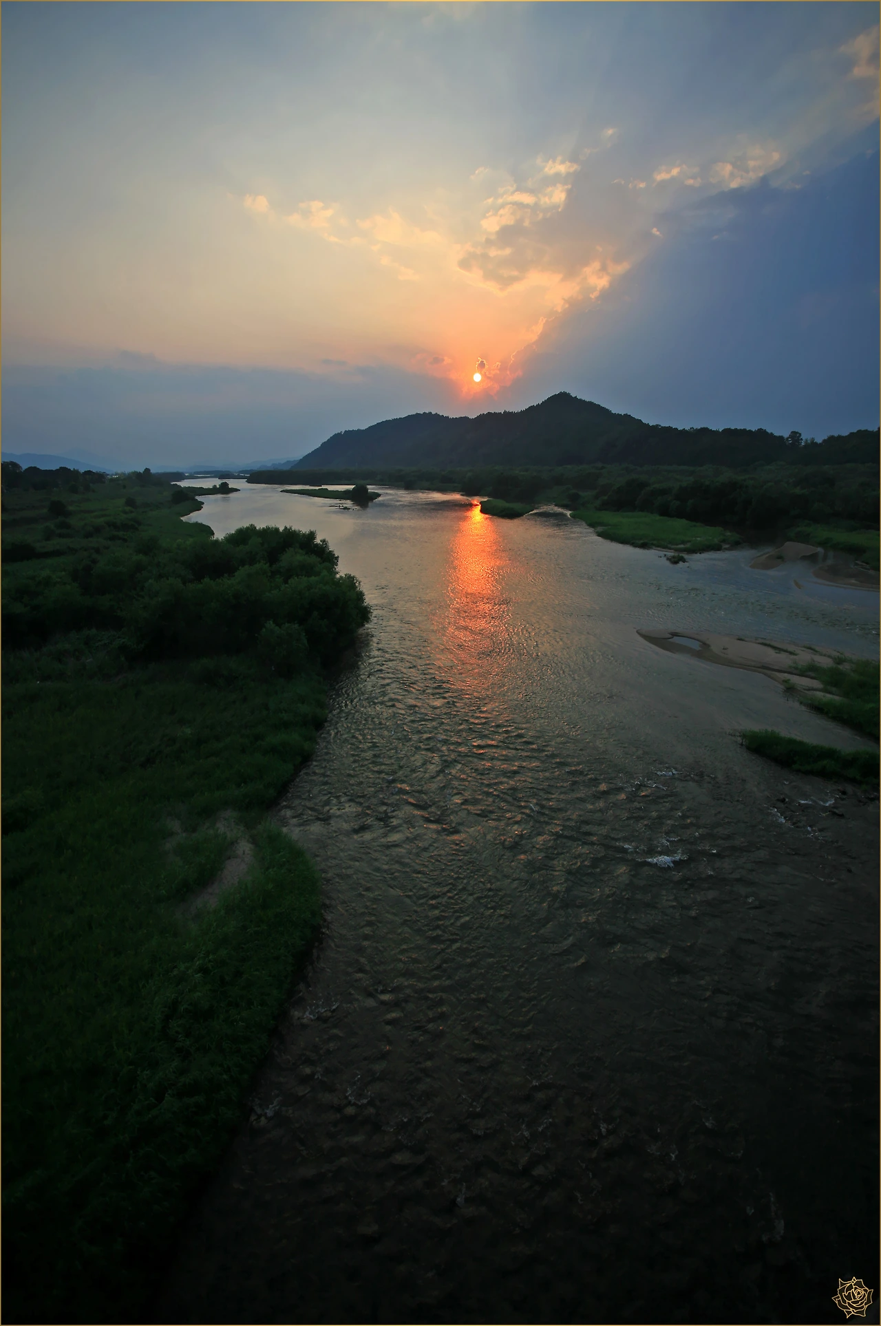 늦은 오후시간에 하회마을을 내려다 볼 수 있는 부용대에 도착하여 잠시 머물다, 강을 건너기 위해 광덕교로 향하니 비가 잠시 멈춰 주었고, 그 시간, 짙붉은 일몰이 나를 반갑게 맞이합니다. 내가 사진담기를 좋아하는 검붉은 일몰시간의 하늘, 아름답고 행복한 나의 시간입니다.