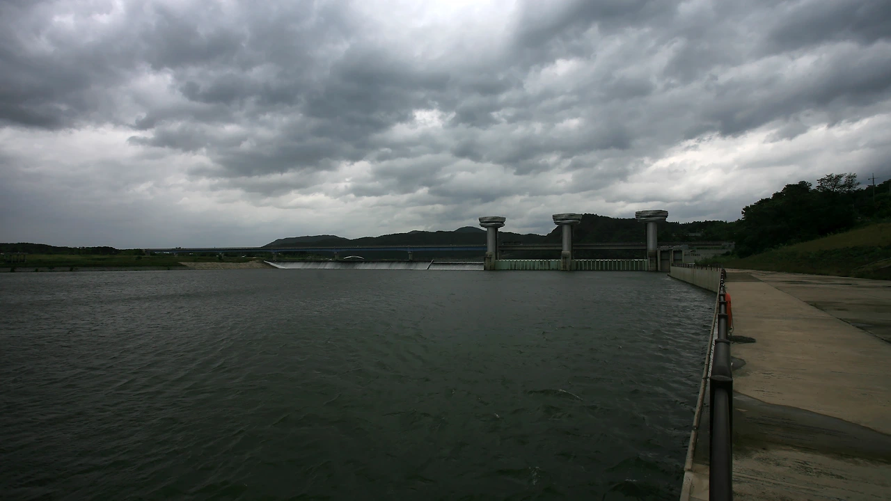 그동안의 가뭄과 고수온의 차단된 호수에서 녹조가 만연하여 이틀 동안 적지않은 비가 내렸지만 녹조가 여전히 물 속에 가득합니다. 호수의 물을 댐 밖으로 많이 쏟아내야 녹조가 사라질 것입니다.
