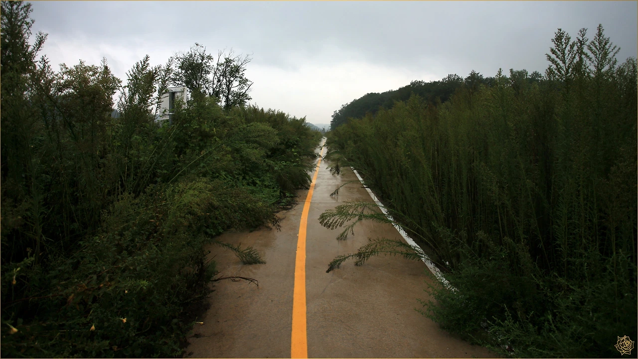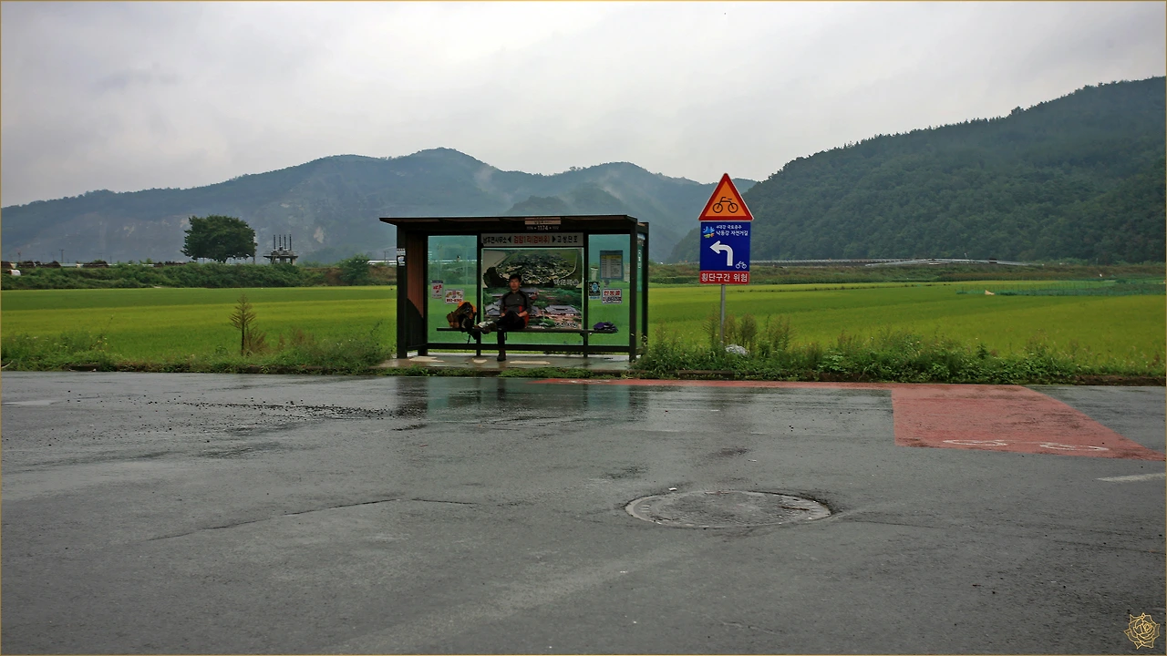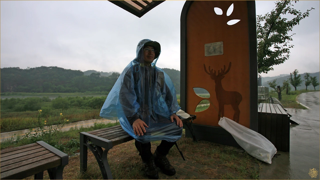 밤새도록 비가 내리고 아침 일찍 출발하려니 오늘도 거센 바람과 비가 길을 막습니다. 다부진 마음으로 비닐 비옷을 입고 우산을 든 채, 창대같은 비를 맞으며 오늘도 길을 나섭니다. 그 비 속에서도 카메라를 꺼내 정지된 시간을 담으며 걸어갑니다.
