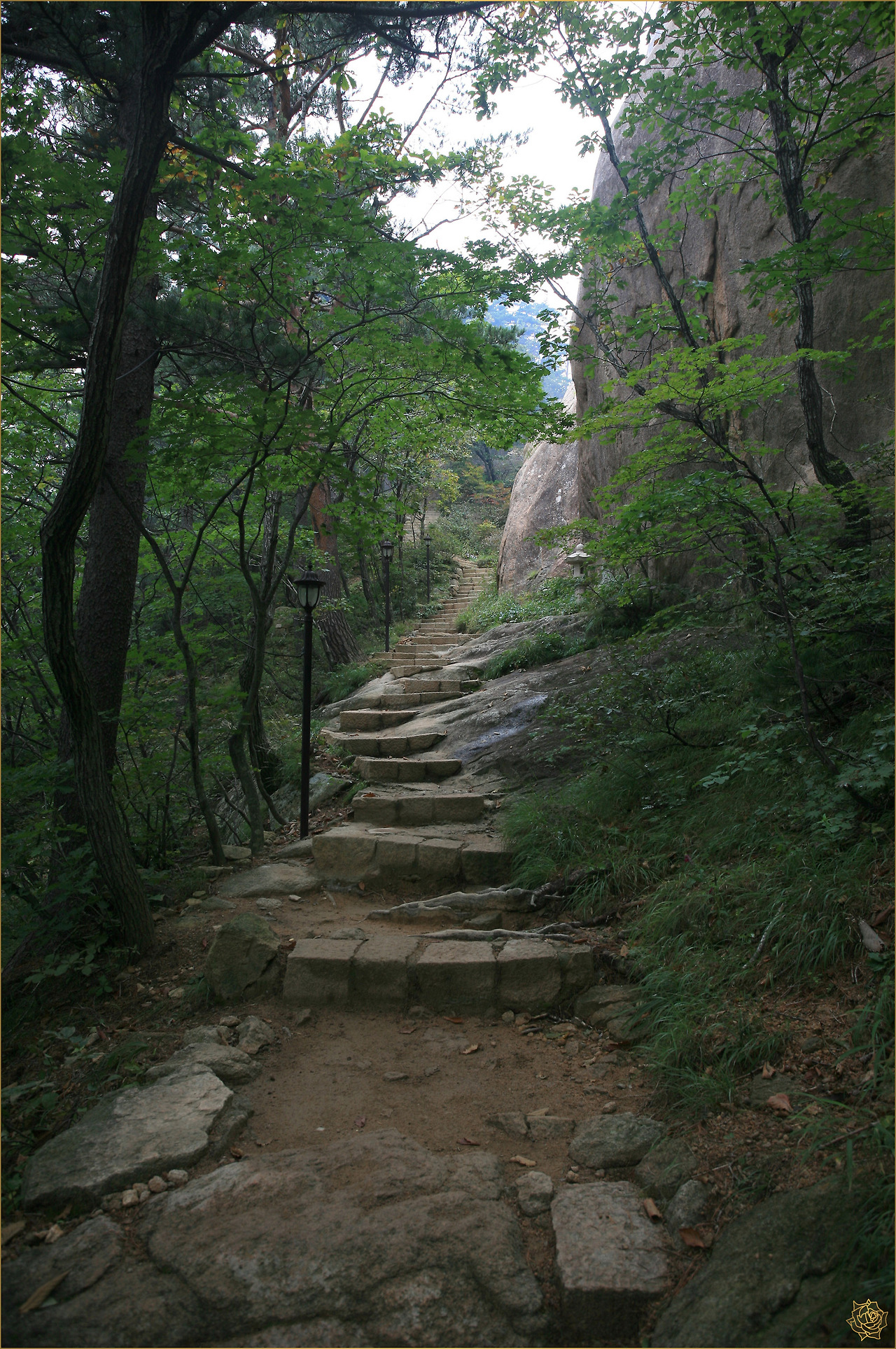 봉정암鳳頂庵에서 수렴동垂簾洞으로 내려가는 길은 모두 크고 작은 돌로 이루어진 급경사急傾斜 길이라 비가 쏟아지면 걷기가 미끄럽고 위험합니다.