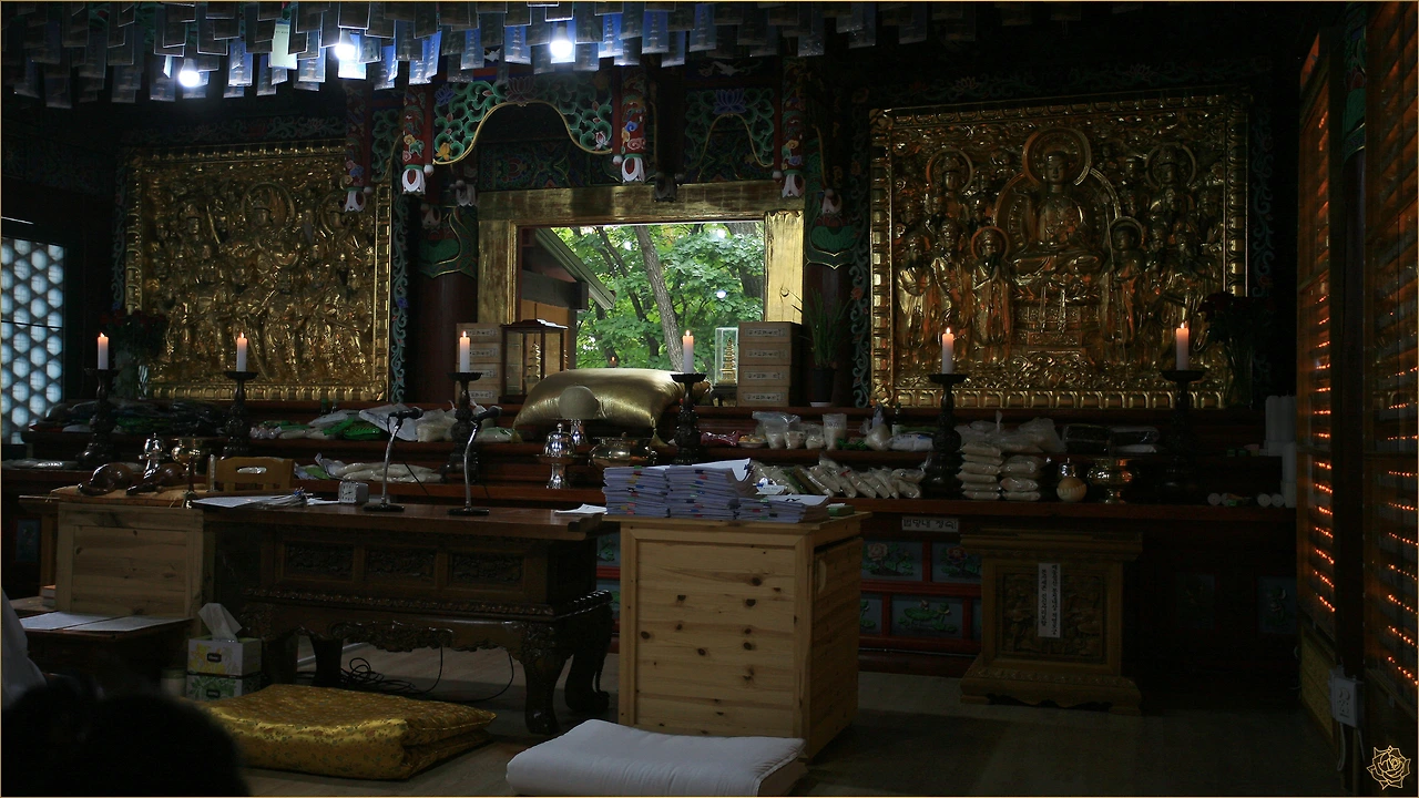 양치질 후, 나름의 정갈함으로 법당法堂에 올라갑니다. 많은 불자佛子들이 전국全國에서 몰려오기에 법당法堂에 일찍 올라가 미리 내 자리를 만들어 놓고 스님과 한 시간여 불공佛供을 올리고 나옵니다.
