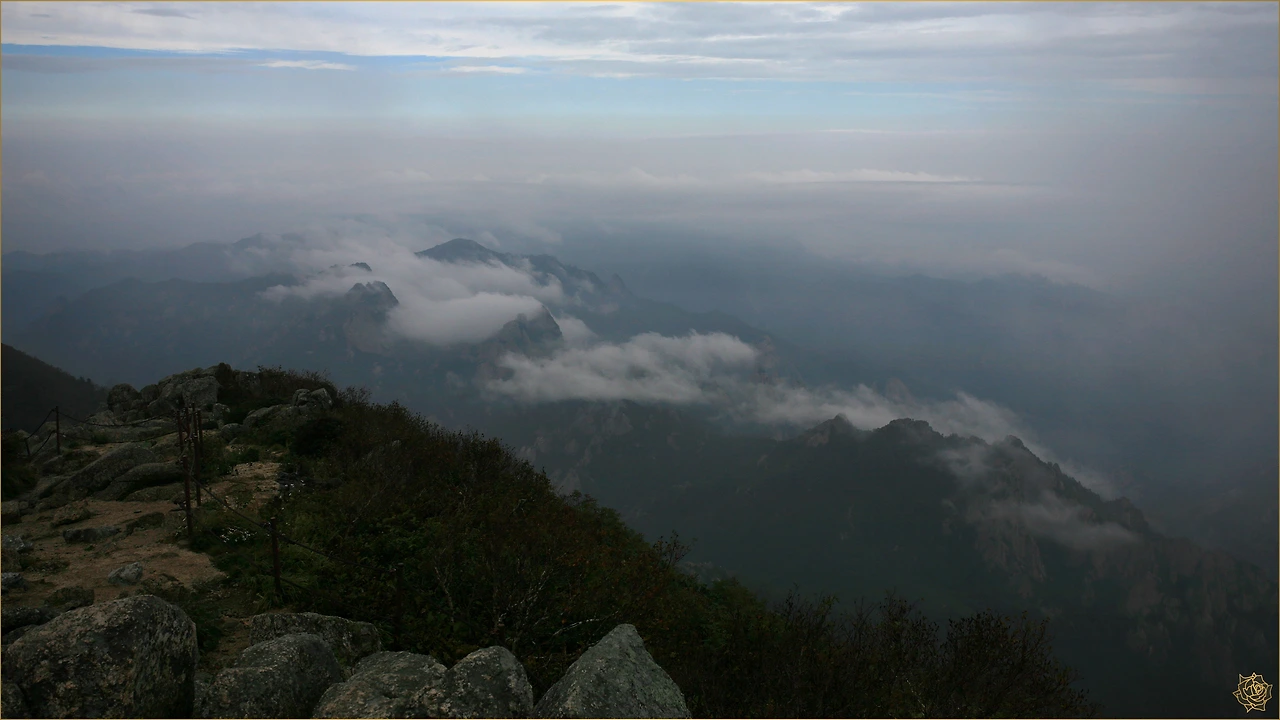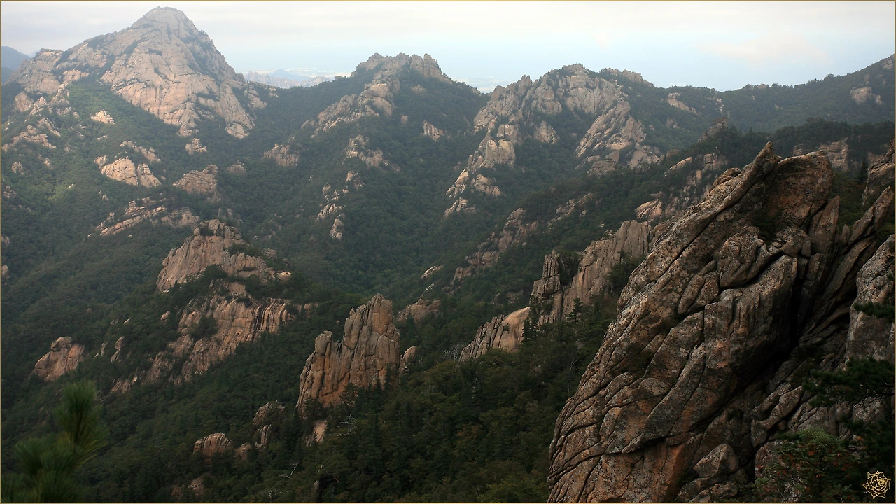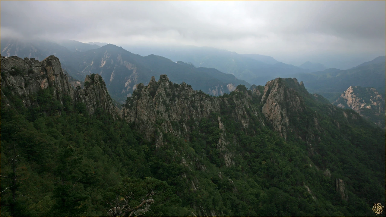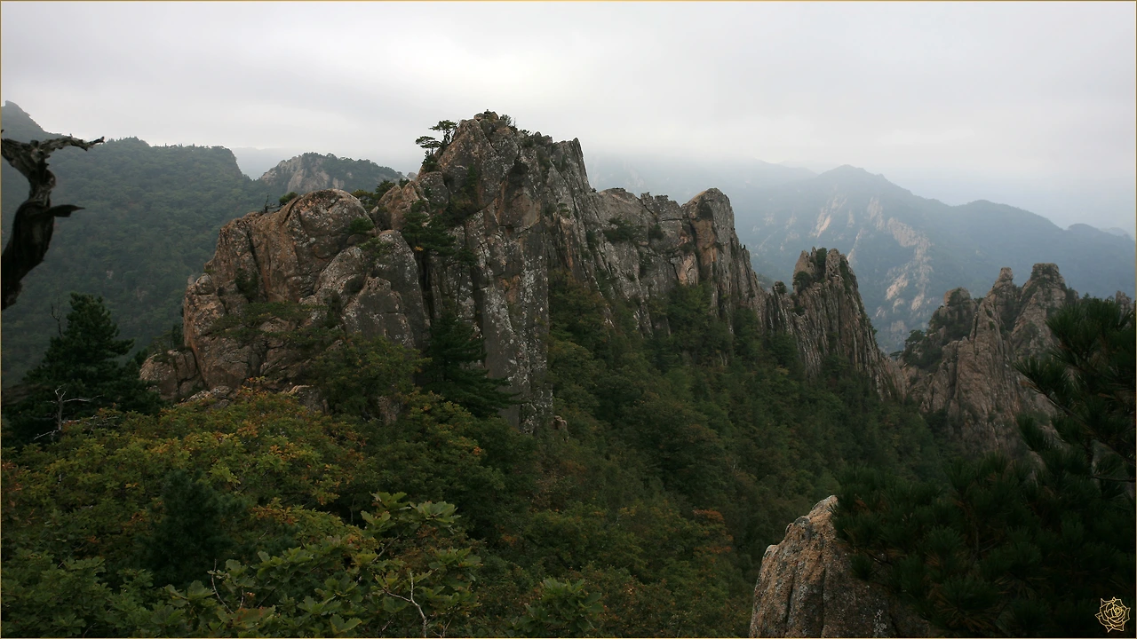 비가 왔다 멈췄다를 반복하는 가운데, 대청봉과 소청봉을 지나 새로이 조성된 소청대피소에서 잠시 머문 후 내려 가노라니, 눈 앞에 펼쳐지는 아름다운 용아장성龍牙長城과 칠형제봉七兄弟峯, 그 봉황鳳凰의 날개 품 안에 자리잡고 있는 봉정암鳳頂庵을 보노라니, 길었던 시간 만큼의 그리움과 그 그리움 만큼의 지난 설악과의 시간들이 이렇게 한 순간 내 가슴 속을 훑고 지나 갑니다.