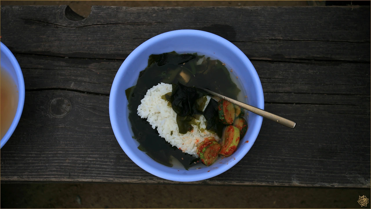 점심 공양供養을 받아들고 허기진 배를 채웁니다. 소금 이외, 그 어떤 조미료도, 그 어떤 다른 건데기도 들어있지 않은 온전穩全한 미역국에 밥을 말아 오이무침 몇 조각이 모두이지만, 그 행복幸福한 단순單純한 맛은 이 순간瞬間, 그 무엇과도 비교比較되지 않습니다.