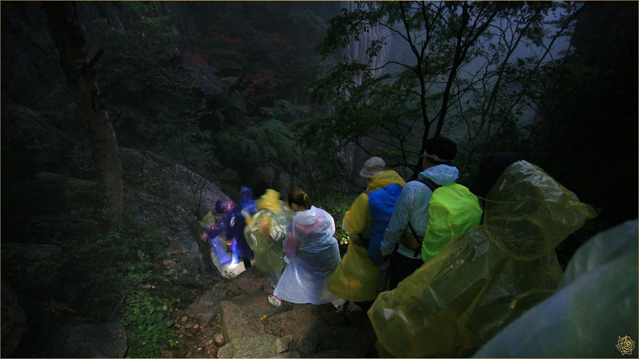 해드랜턴Head Lantern에 의지依支하여 빗속을 뚫고 가파른 돌길을 나서는 불자佛子들의 모습이 너무나도 아름답게 보이고, 또한 눈으로 보는 그 행렬行列이 참으로 보기 좋습니다.