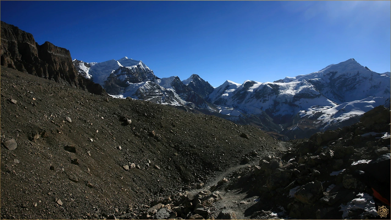 이번 트레일은 푼힐을 거쳐 안나푸르나 베이스캠프를 가는 길 만큼 난이도難易度가 높지는 않지만 4~5천m 높은 해발에서 급경사 길이 구간구간 제법 있으며 무엇보다도 위험한 랜드슬라이드Land Slide (사태) 구간이 여러군데 포진하고 있어, 사면 윗 쪽을 잘 살피며 조심해서 찬찬히 된호흡으로 극복해야 겠지요.