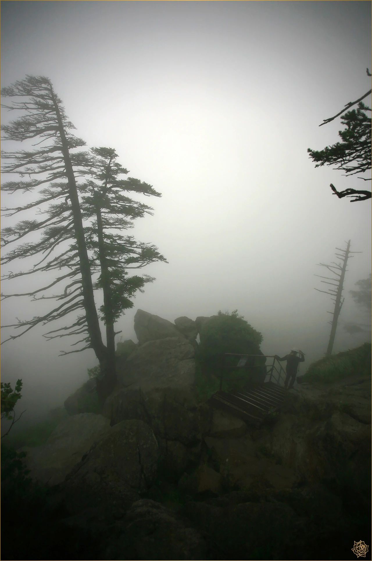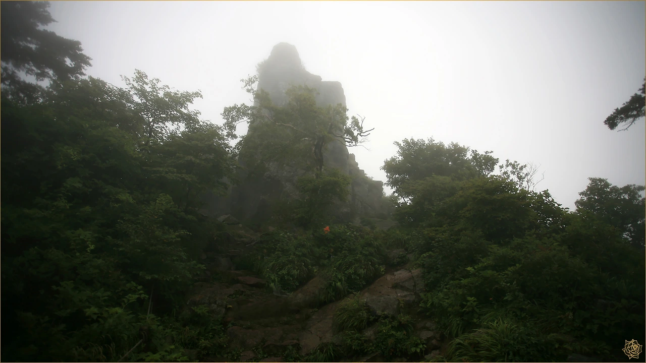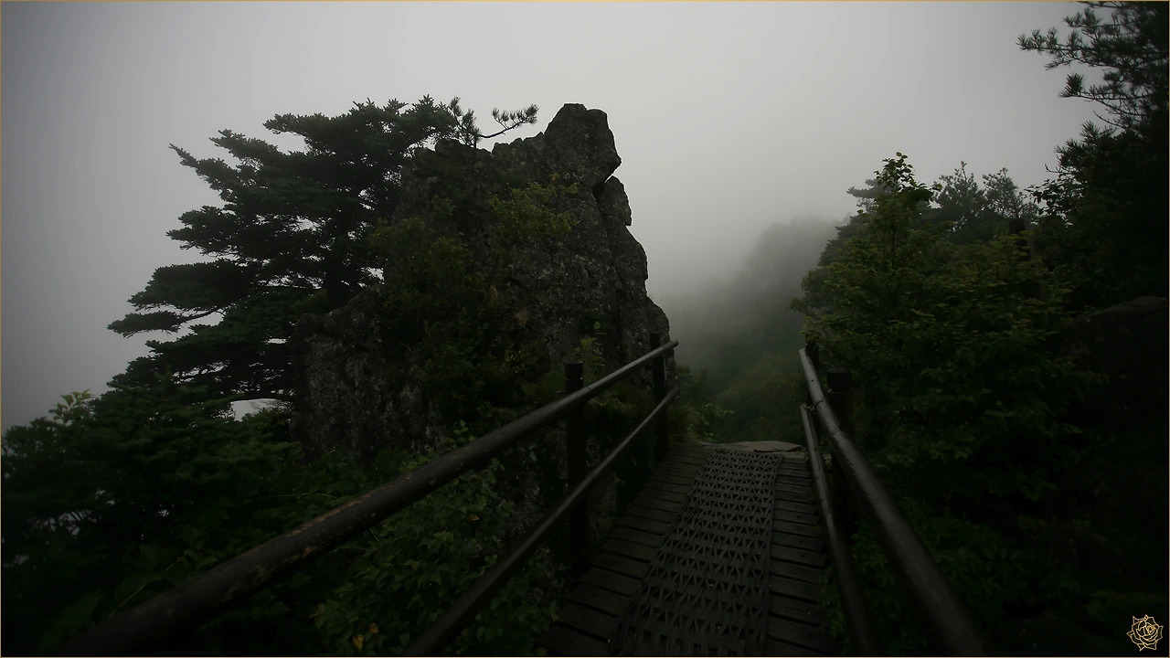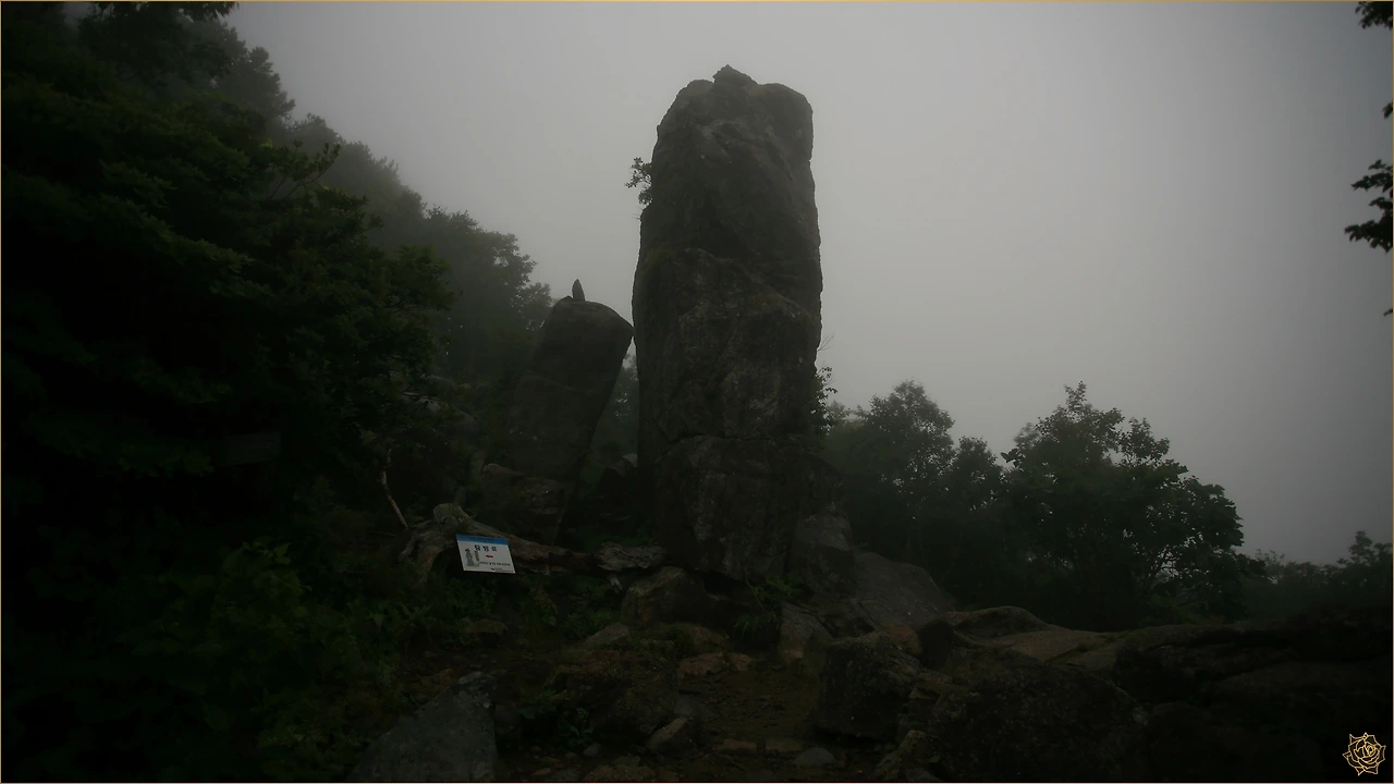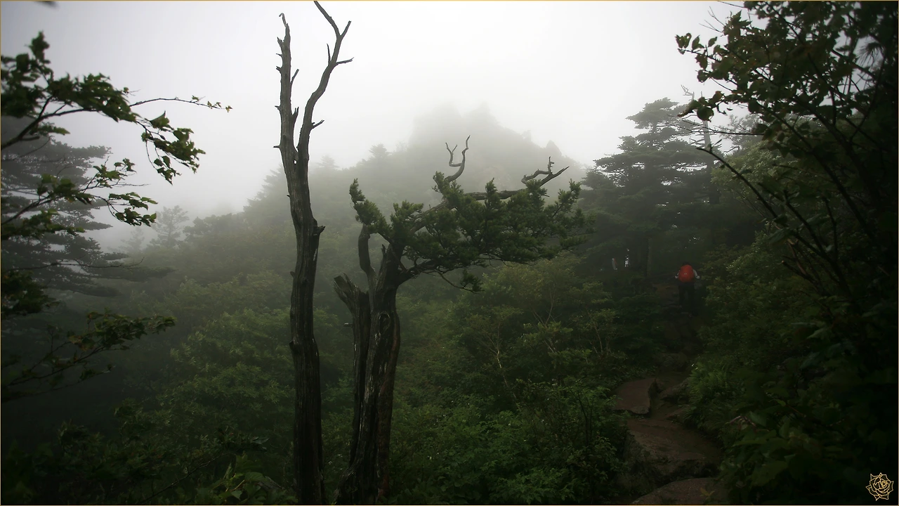 가파른 천황봉을 향합니다만 안개비에 젖어 온몸이 가랑비를 맞은 듯 쉼없이 불어대는 강한 바람은 여름날씨가 아닌 듯 합니다.