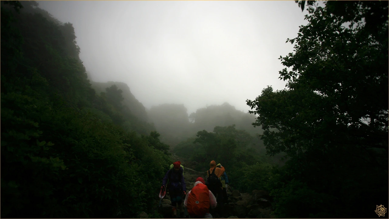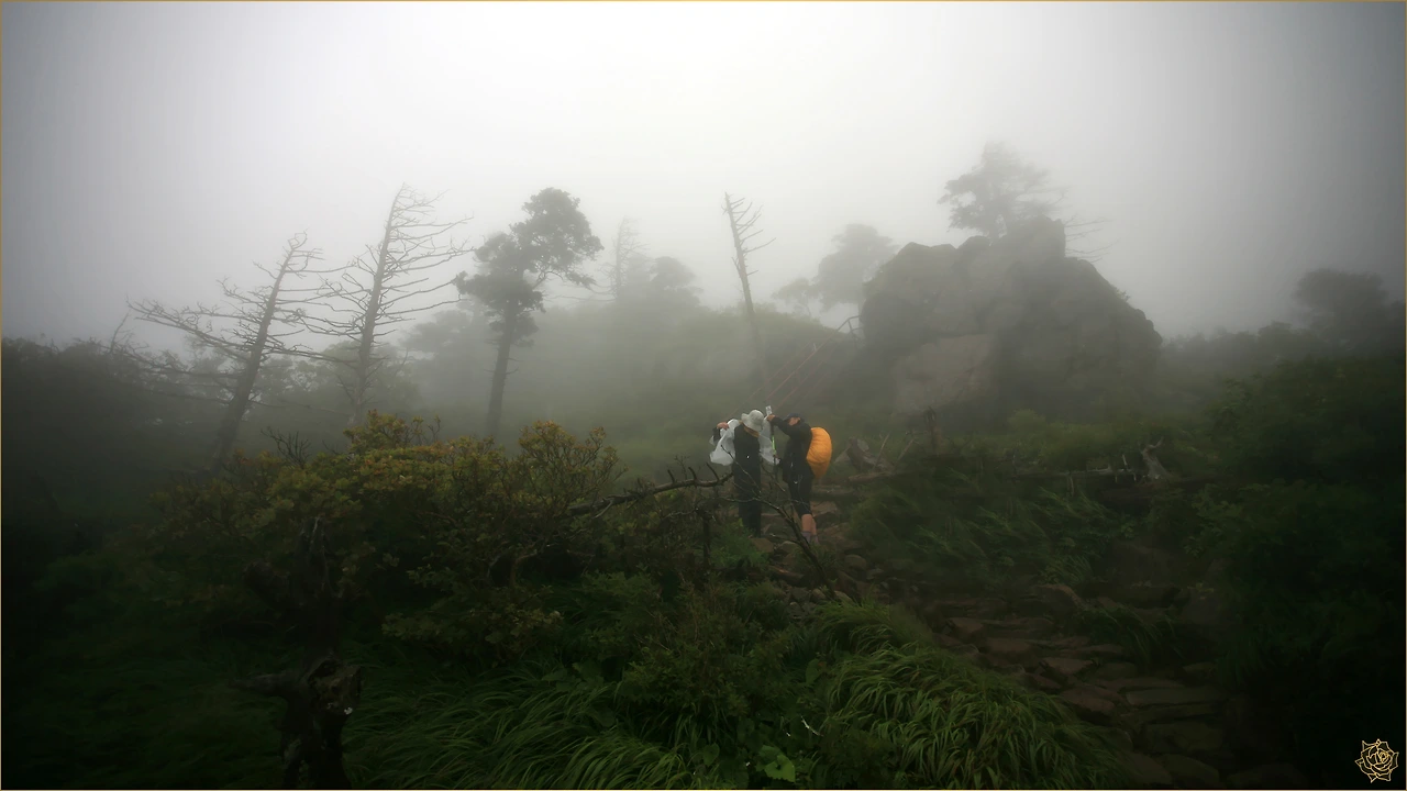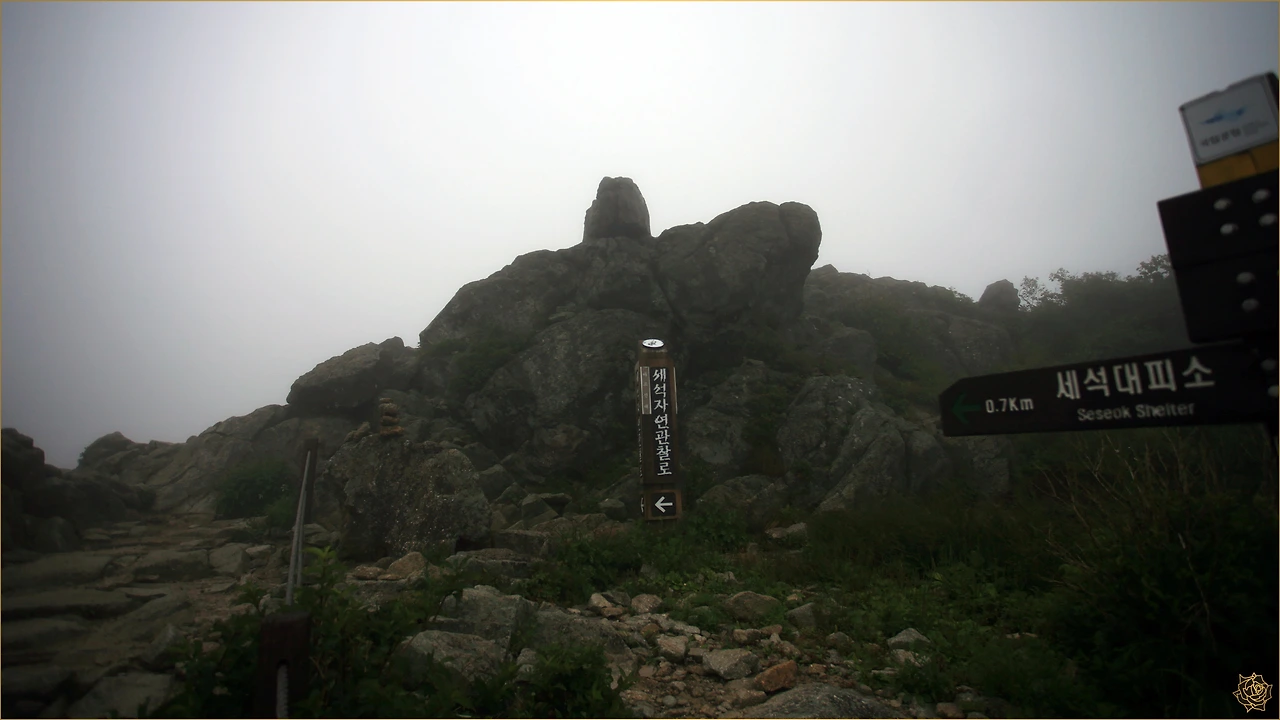 세석대피소에 도착하니 짙은 안개와 함께 빗줄기가 굵어지기 시작합니다. 이런 상태로 성삼재까지 종주하기는 불가능 하다는 판단에 거림 쪽으로 하산下山 합니다.