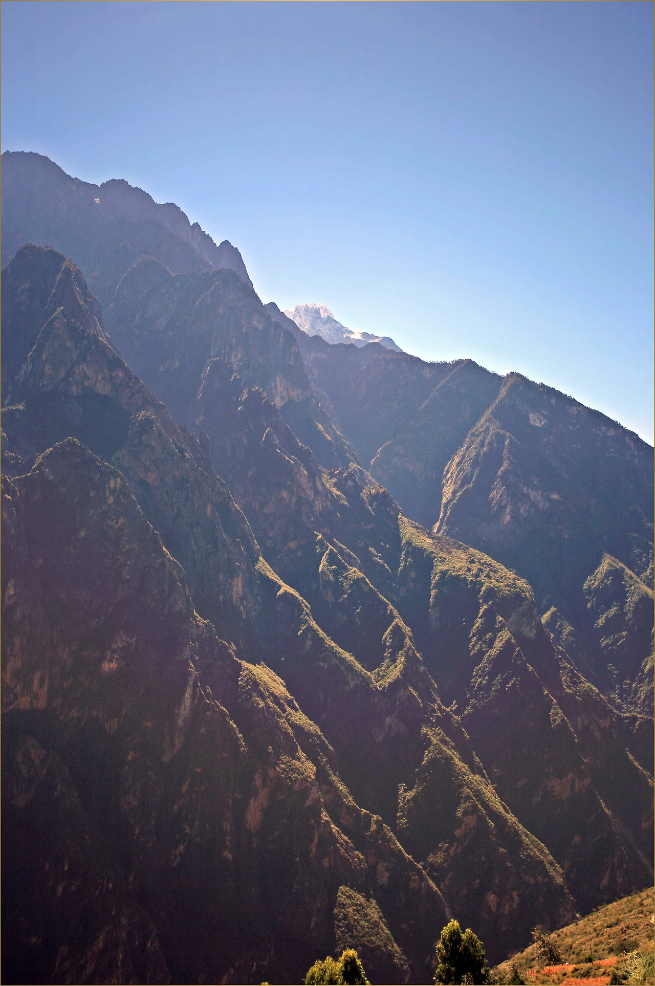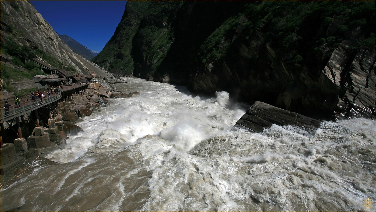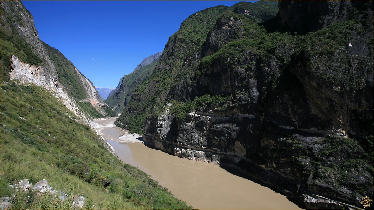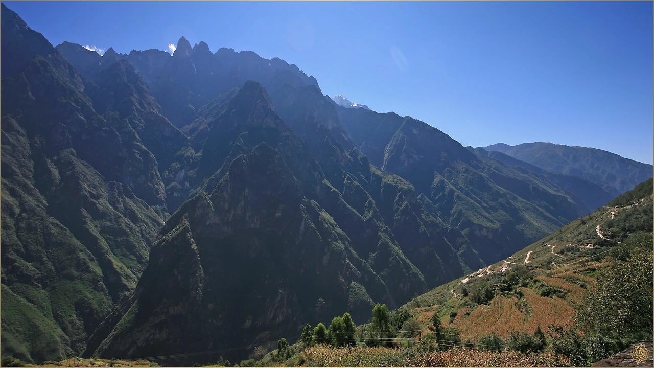그런 윈난성이 품고있는 아름다운 트레킹코스가 바로 호도협虎跳峽이며, 세계에서 가장 긴 장강長江이 이곳에 오면 금사강錦沙江이란 이름으로 거대한 산협을 타고 흘러듭니다. 인도와 유라시아 대륙의 충돌로 생긴 옥룡설산玉龍雪山(위룽쉐샨)과 합파설산哈巴雪山(하바쉐샨) 사이로 장강이 흘러들면서 이렇게 깊이 1,000m에 달하는 깊고도 깊은 협곡이 파노라마를 만들어 내는 아름다운 곳입니다.