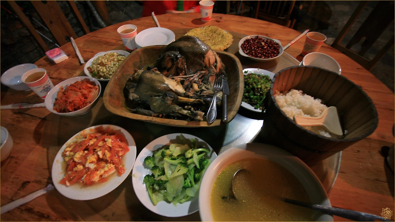 28밴드 정상까지 많은 사진을 담으며 올라갑니다. 이미 해는 기울었고, 계곡길을 따라 해드랜턴에 의지하여 차마객잔에 도착하니 이미 밤 8시가 되었습니다. 객잔에서 도착 예정시간에 맞춰 미리 준비해둔 오골계 백숙은 정말 진수성찬이었습니다.