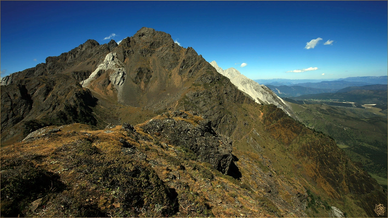 전체적인 연령이나 힘을 고려했을 때 내가 일행들에게 조금이나마 도움이 되어야 했을 상황이었지만, 정작 내가 먼저 지쳐 뒤지기 시작합니다. 처음엔 오래 전에 경험했던 저혈당이 온 것으로 생각했지만, 옥룡설산 제1봉 정상을 넘어서면서 저혈당이 아님을 알아차립니다. 하산길에 내 의지와 상관없이 몸이 한 곳으로 쏠리며 넘어집니다.