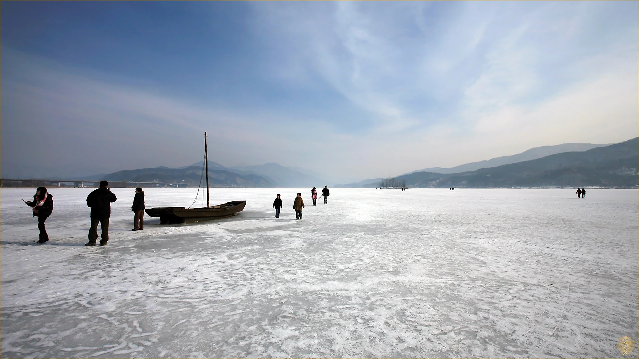 연애시절 추운 겨울날, 아무도 없는 팔당 강변 얼어있던 강 위에 올라, 얼음에서 밀고 당겨주며 놀았던 아련한 기억들과, 잊을 수 없는 사랑의 메시지가 고스란히 한강漢江을 따라 담겨 있습니다.