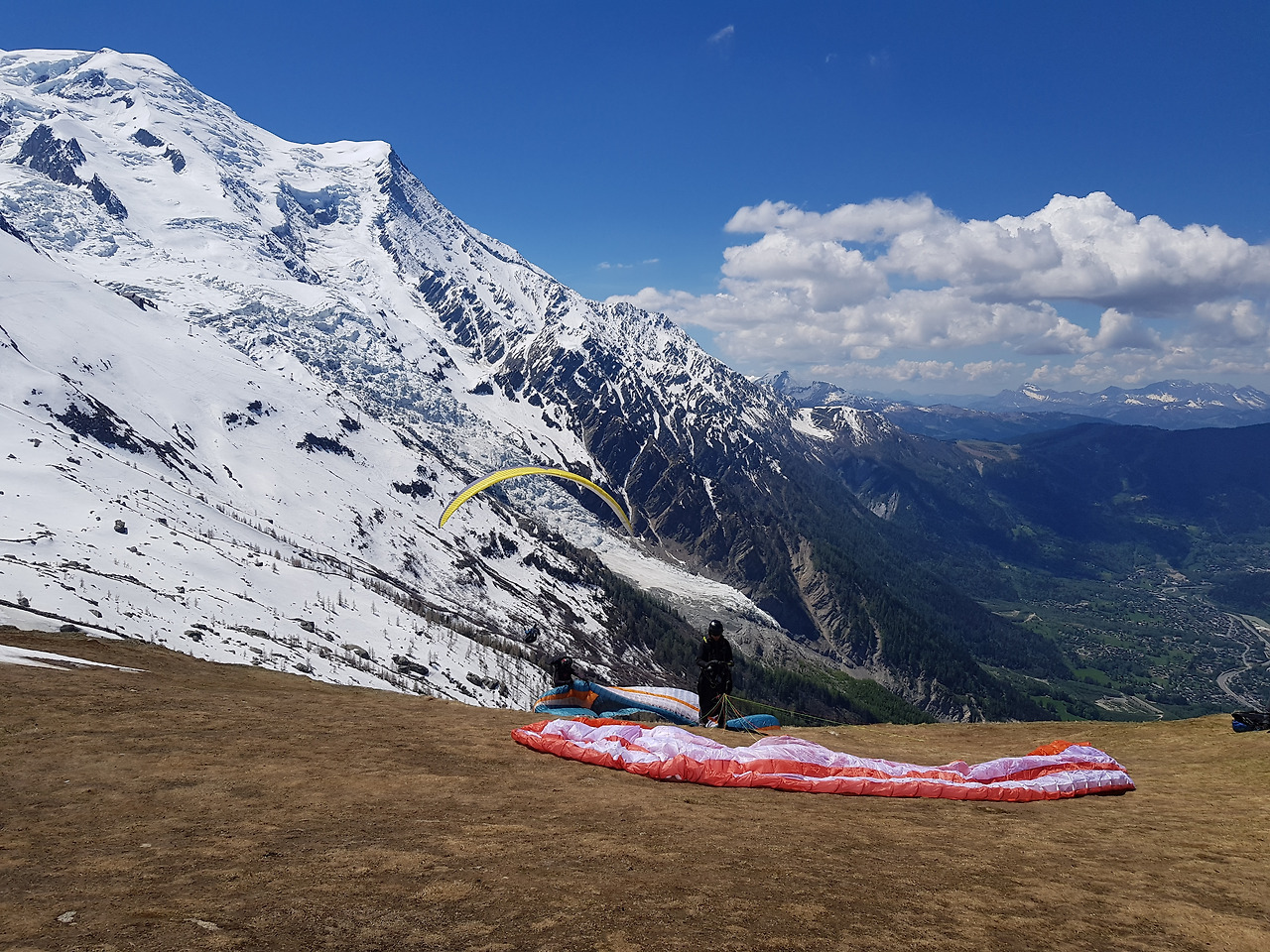 드디어 패러 글라이딩을 하는 날이 밝았다. 다행히 날씨는 아주 맑다. 예약 시간이 될 때까지 나는 숙소의 마당에서 책을 읽었다. 샤모니 또한 물가가 싸지 않다 보니 1인이 묵을만한 숙소를 구하기가 쉽지 않았다. 우연히 큰 호텔에 있는 4인 여성 도미토리를 발견했다. 도미토리는 캐리어를 펼칠 공간도 없이 좁았지만, 호텔의 모든 투숙객이 이용하는 공용 공간이 많았다. 그중 설산의 풍경을 앞에 두고 캠핑의자를 펼쳐 쉴 수 있는 마당에서 나는 대부분의 시간을 보냈다. 마당에서 책을 읽고, 맥주를 마시고, 영화를 본 평범한 시간들이 몽블랑 앞에서라면 특별하게 느껴졌다.