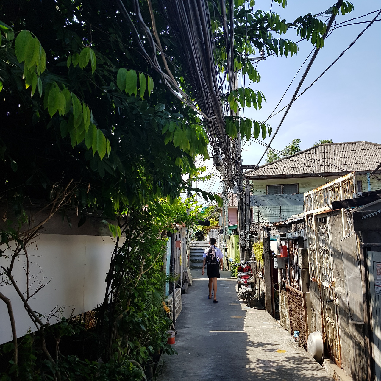 하지만 구글맵에서 알려준 마을버스가 오지 않자, 나는 구글맵 경로와 비슷한 태국어 노선을 가진 버스에 운을 맡겨 타기로 했다. 가끔은 불확실한 가능성에 용기를 가져보는 것, 그게 바로 여행의 묘미 아닌던가. 다행히 거침없이 난폭 운전하는 버스기사님 덕에 에어컨 없이도 시원하고 빠르게 마을 근처까지 도착할 수 있었다.