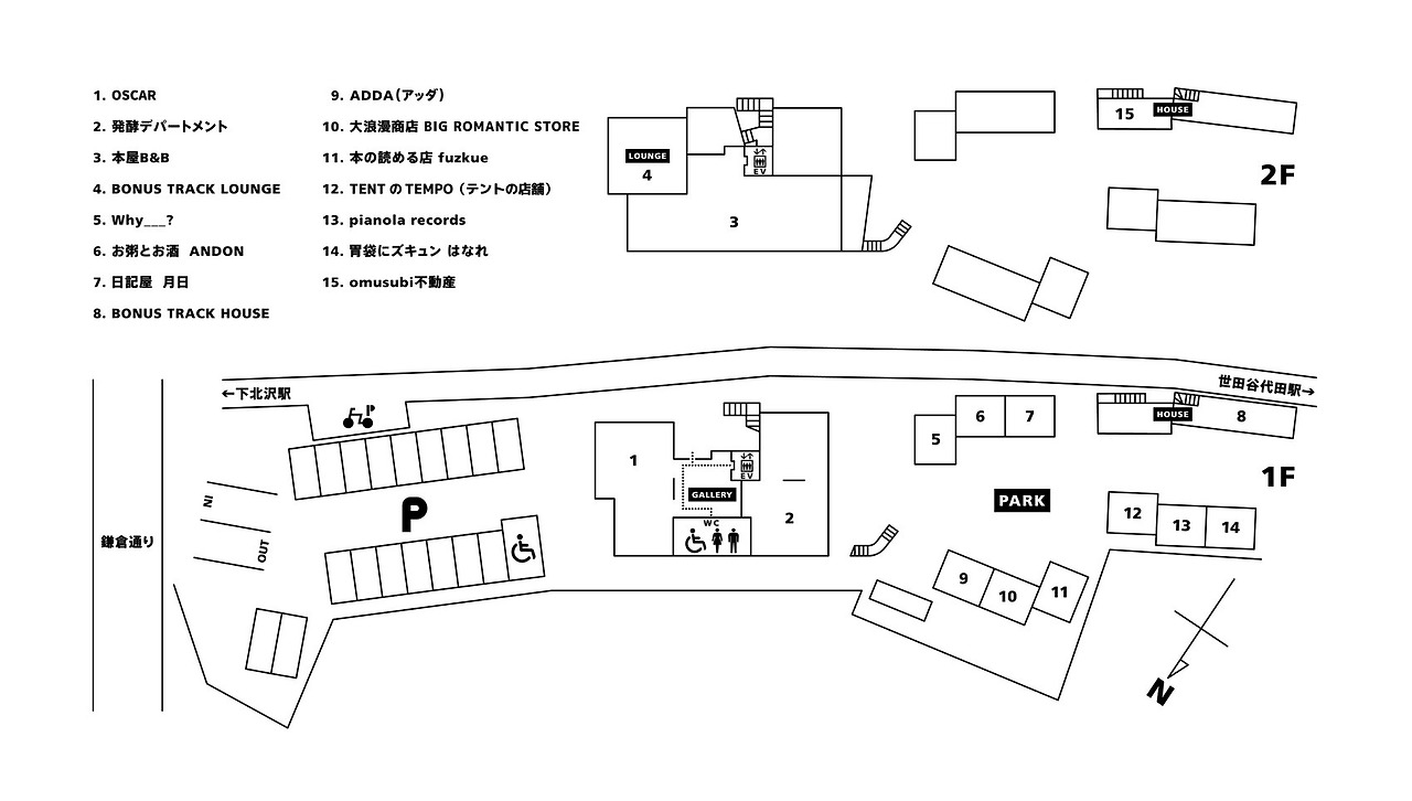 리로드의 반대편 세타가야다이타역에서 가까운 보너스트랙도 빼놓을 수 없습니다. 리로드가 부동산 디벨로퍼 세키구치 마사토 그리닝 CEO가 기획했다면, 보너스트랙은 시모키타자와에서 책방 ‘B&B’를 운영해 온 크리에이티브 디렉터 우치누마 신타로가 기획했습니다. 다른 색깔의 두 기획자가 각각의 공간을 어떻게 조성했는지 비교하는 즐거움이 있습니다.