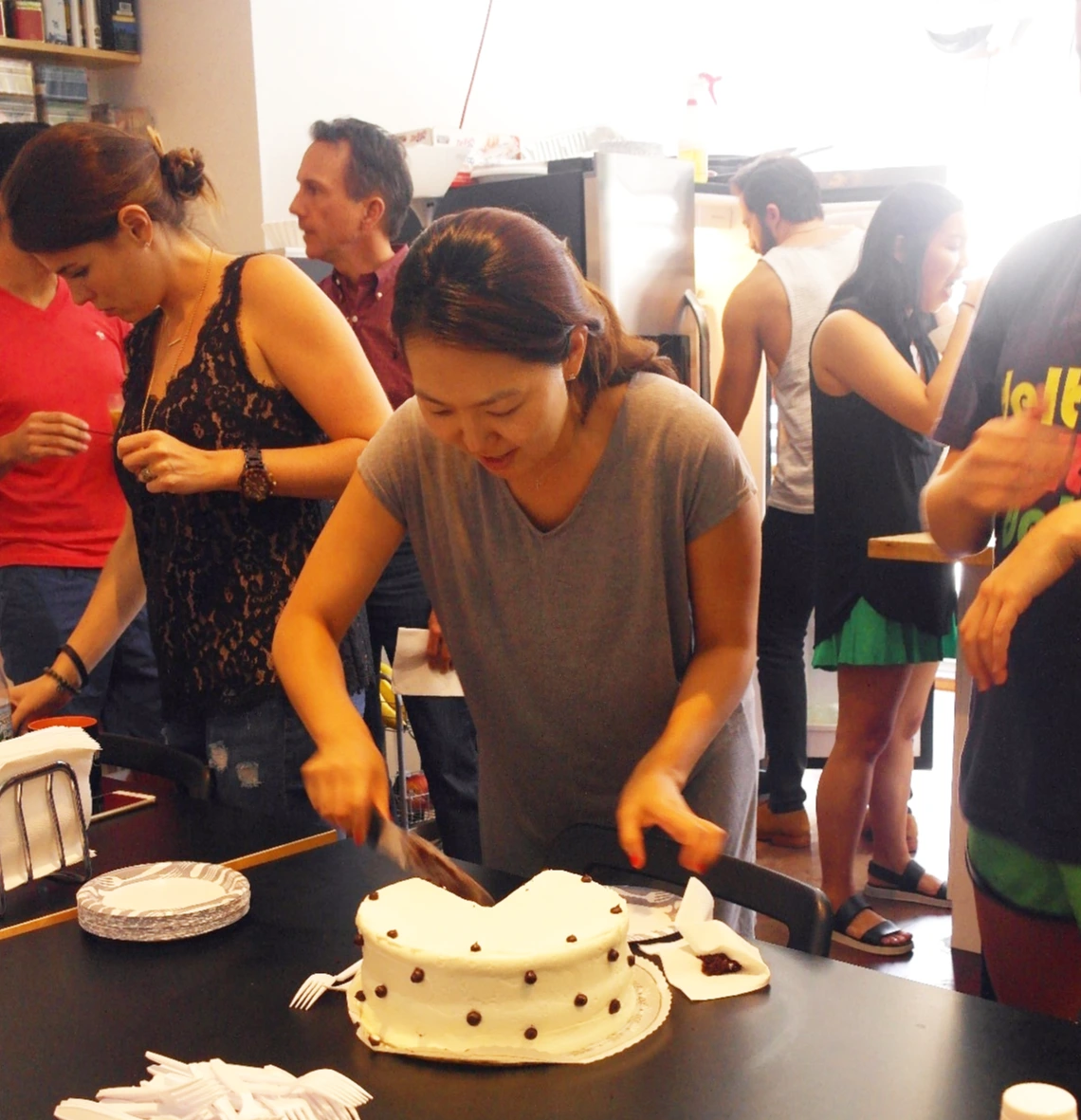 매 점심 시간은 회사 내 메인 쉐프의 요리를 함께 먹는다. 그리고 새로 들어온 식구나 생일인 사람을 위해 작은 축하의 시간을 갖기도 한다. 며칠 전, 영화 <인턴>을 보면서 문득 'noom'에서 새로운 식구를 축하해주고 케익을 함께 나눠 먹는 모습이 겹치기도 했다.