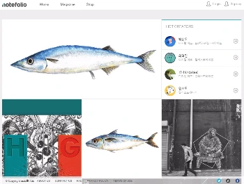 [노트폴리오는 크리에이티브 네트워크로, Note(주목하다) + Portfolio(포트폴리오)의 합성어다. 여기저기 흩어져 있는 아티스트와 디자이너들이 한 곳에 모여 자신의 작품을 공개하고, 그 작품을 통해 대중과 소통할 수 있는 공간을 지향한다.]