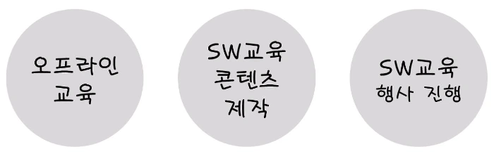 그런데 사실 위의 세 가지는 말 그대로 우리가 추구할 '가치'이고, 조금은 뜬구름 잡는 소리에 가깝다.(웃음) 우리에겐 보다 더 구체적이고 실질적인 것이 필요하다. 그래서 우리는 우선 시중에 나와 있는 다양한 SW 교육용 교구들을 분석/공부하면서 실제적인 방법에 대해 하나씩 아이디어를 내고 있다. 그리고 이를 실천 위해 현재 주력하고 있는 사업 분야는 크게 3가지이다.