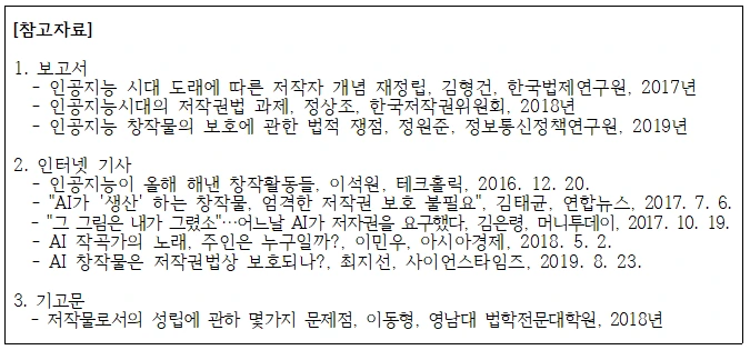 - 동시에 인공지능 창작자의 권익 보호를 위한 입법 방안 마련