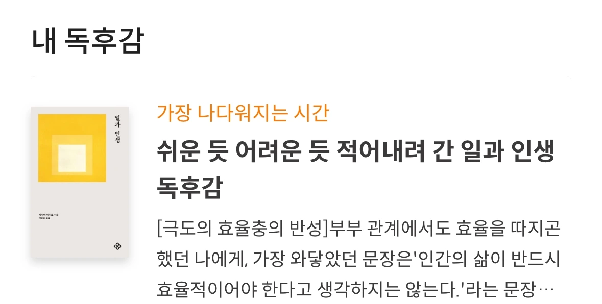 '인간의 삶이 반드시 효율적이어야 한다고 생각하지는 않는다.'라는 문장이었다.