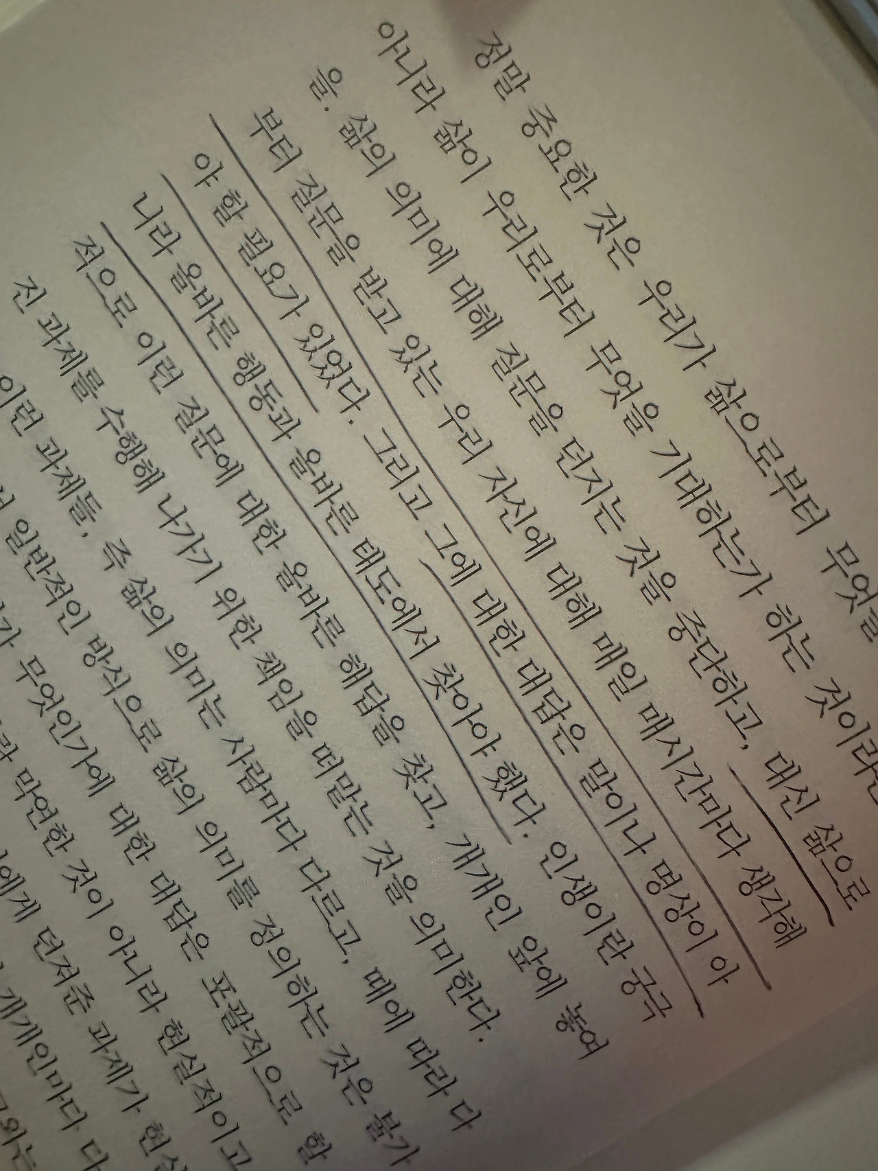 삶에 대해 질문 던지는 것을 중단하고, 삶으로부터 찾아야할 필요가 있었다.