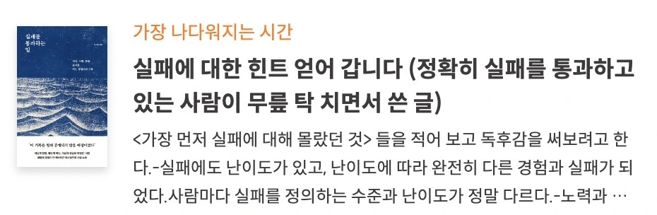 실패를 통과하는 일을 읽고 독후감을 쓰려고 다시 책 내용 중 감명 깊은 내용들을 찍어 놓은 사진들을 봤더니 이상하게도 이 책은 거의 책의 뒷부분에만 몰빵이 되어있다는 것을 알게 되었다.