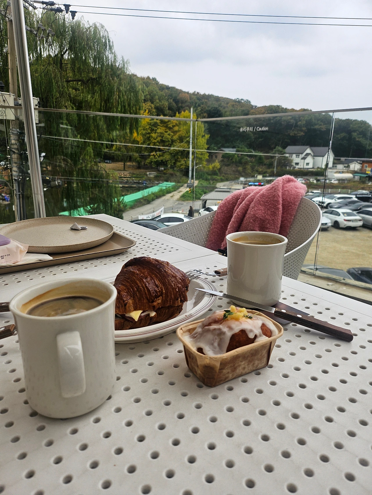 "카페를 사전답사를 하기도 하네" 하면서 남편은 나를 묘한 눈빛으로 놀리듯 바라봤지만 "운전 연습으로 도로 주행한 것이라고 생각해" 하면서 어쩔 수 없는 나도 이런 상황이 어처구니없어서 슬쩍 농담으로 받았다. 아는 언니는 나의 아침부터 사전 답사했다는 말에 웃으면서 재밌어했고 나는 이번 기회에 우리도 이제 좀 달라져야 한다고 몇 번 용기를 얻어보자며 다짐했다. 남들이 우리 이야기를 엿듣노라면 전국을 차로 여행하는 여행자인 줄 알겠지만 운전을 하면서 새로운 곳에 가는 것을 불안해하는 길치인 우리에게는 소소하고 중요한 다짐이다. 내비게이션의 도움을 받고 기억을 살려서 가고 싶던 카페에 도착해서 맛있는 디저트와 커피를 야외에서 마시면서 가을날의 좋은 시간을 즐겼다. 빵도 맛있고 커피도 진하고 좋았다. 물론 돌아오는 길은 조금 더 빨리 좌회전을 해서 남편이 일러준 대로 오지는 못했지만 가다 보니 내가 알던 주변 길이 나왔고 그렇게 길과 길이 만나는 지점을 알게 되니 재밌기도 했다. 오늘 카페탐방은 마치 큰 일이라도 한 듯이 평상시보다 뿌듯한 나들이였다.