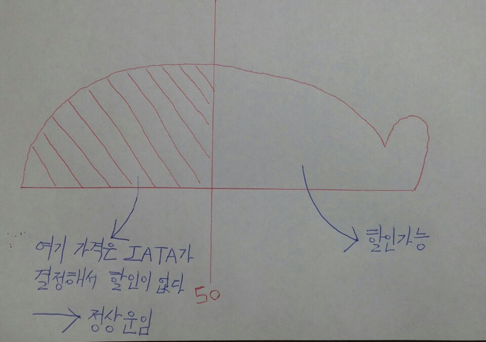 이곳에서 정한 바로는 대체로 항공권의 50%는 정상 가격으로 판매해야 하고 나머지 50프로는 자율적으로 판매하게 해 줍니다. 자율적이라는 것이 할인은 가능하지만 정상 운임보다 더 비싸게 받을 수는 없는 것입니다. 성수기 때는 워낙 구매하려는 사람이 많기 때문에 정상가라도 마다하지 않고 사니 문제가 없습니다. 하지만 비수기에는 이 정상 가격 자리를 메우기가 쉽지 않겠죠. 그래서 특가로 홍보를 해도 한계를 보이는 겁니다.