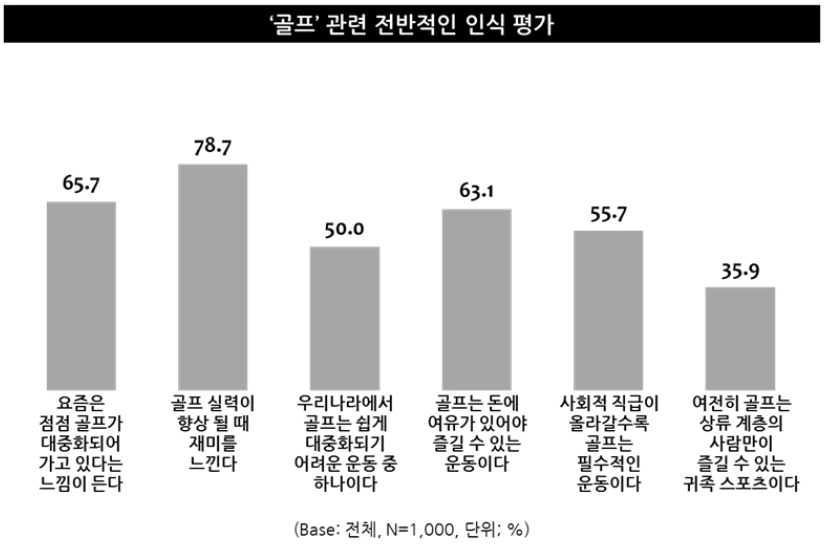 엠브레인 트렌드모니터에 따르면 ‘골프 경험’ 및 ‘스크린골프’ 관련 설문조사 결과, 골프의 대중화를 인정하는 동시에 여전히 골프에 대한 편견도 비중이 큰 것으로 보였다.
