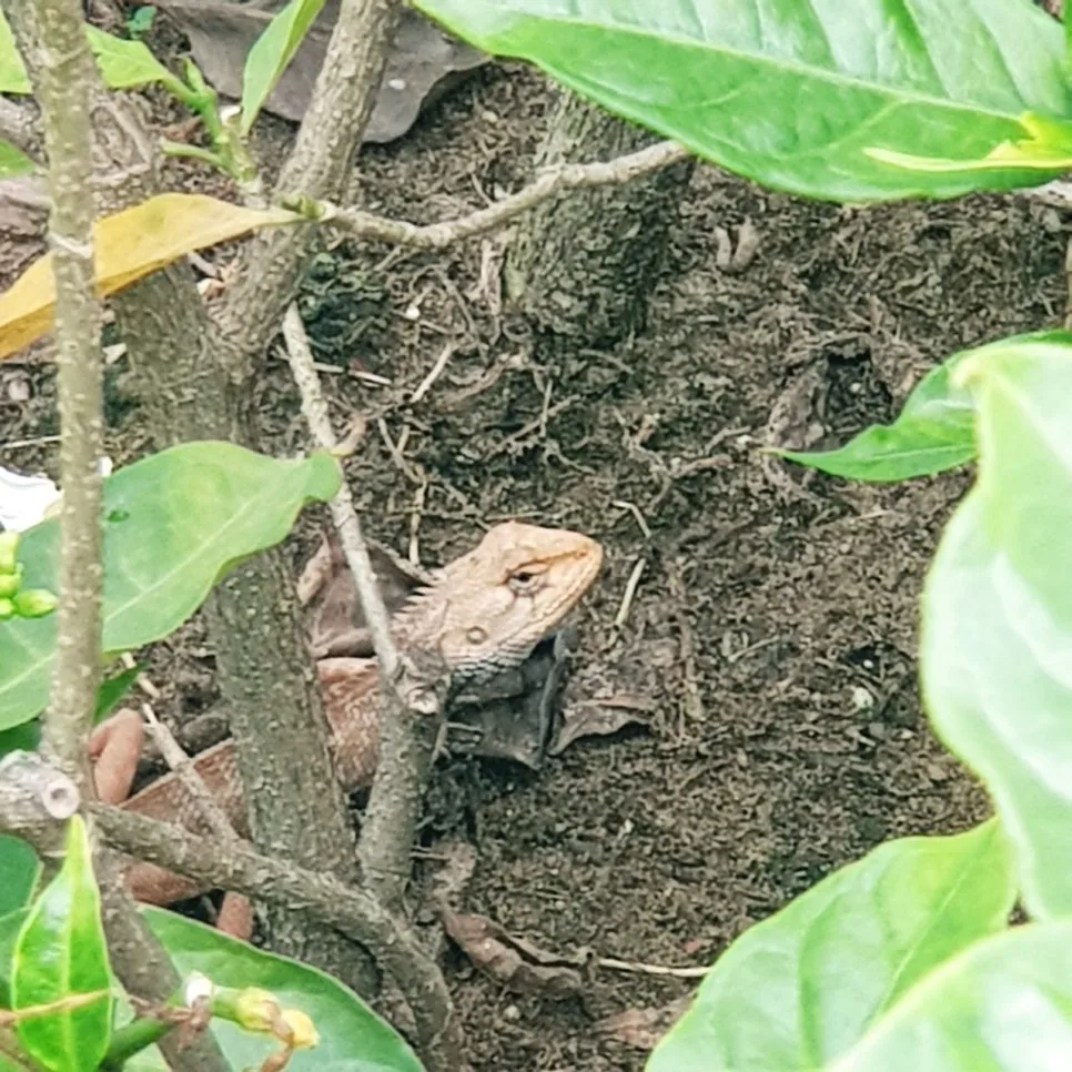 새끼이기에 재빠른 동작의 본능을 갖추지 못하고 그저 죽은 듯 멈추어 있는 것이 그의 생존의지였습니다. 몇 분 후 일부러 그 자리를 피해 주고 다시 오니, 어느새 새끼 개코 도마뱀이 줄행랑을 치고 도망하였습니다.