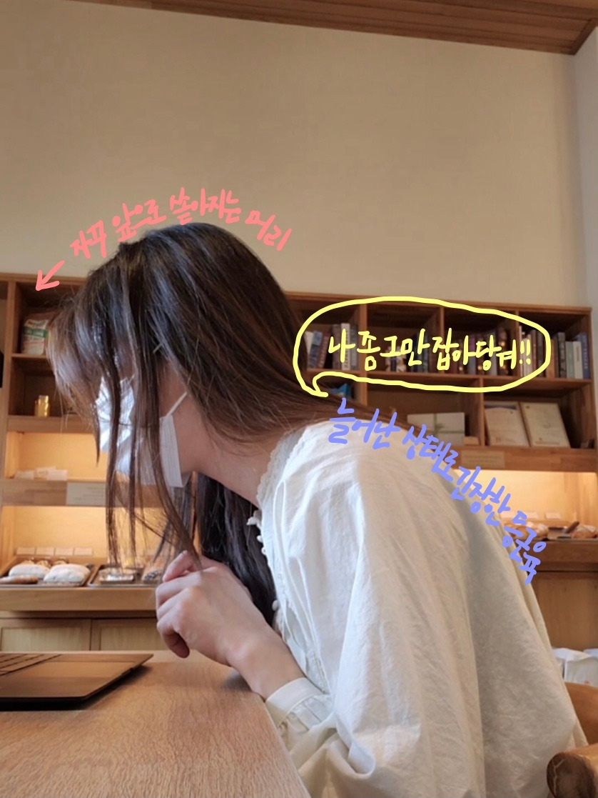 반면에 겉에 있는 큰 근육들은 동원할 수 있는 힘의 크기가 크고 지구력은 약합니다. 그래서 피로도가 굉장히 심한 편이죠. 이 큰 근육들은 운동하거나 힘을 쓸 때는 적극적으로 힘을 내주고, 또 내가 쓰지 않을 때는 off가 되어 있어야 하는데요. 만약에 자세를 잡아주는 속근육들이 일을 제대로 하지 못할 경우, 이 겉에 있는 근육들이 그 역할을 대신하게 돼요. 예를 들면 우리가 모니터 속으로 빨려 들어가는 동안 우리의 머리가 떨어지지 않도록 더욱 단단히 붙잡고 있는 상승모근처럼요. 그렇다면 이 근육들은 굉장히 큰 힘으로 엄청 피로도를 쌓아가며 하루종일 내 자세를 유지해야 합니다. 굉장히 비효율적이죠. 뼈에 가까이 붙어 있는 속근육들이 제 역할을 해주었다면 큰 힘을 쓰지 않고, 피로하지도 않으면서 자세를 잘 유지할 수 있을 텐데요.