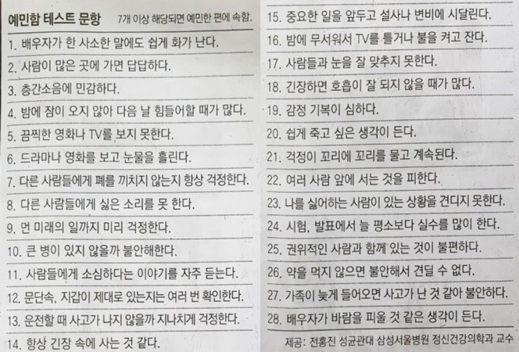 예민함 체크 리스트에서 볼 수 있듯, 저는 만나기로 한 사람이 한동안 연락이 안 되면 사고가 난 게 아닌가, 나쁜 일이 생긴 게 아닌가 하는 시뮬레이션이 머릿속에서 자동으로 재생되곤 합니다. 그런 생각을 하고 싶지 않은데도 그런 상상이 저절로 뭉게뭉게 피어나버리고, 그 상상으로 인해 걱정하고 불안하게 됩니다. 그리고 낯선 사람을 만나야 하는 자리에 가야 하는 일이 생기면, 혹은 오랜만에 만나는 누군가를 보러 가는 길이면 그 사람들이 저에게 무례하게 대하거나, 민망하게 만들거나, 수치심을 일으키게 하거나, 은근히 무시하고 꼽준 등의 부정적인 상황들이 또 머릿속에 자동적으로 재생되곤 합니다. 그러니 당연히 불안하고 긴장하게 되고요.