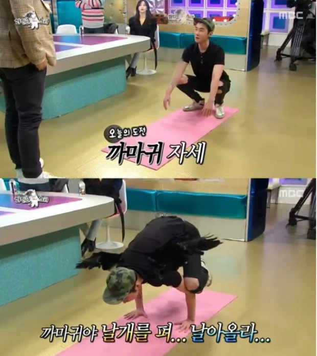 이 자세를 연습하기 위해서 등을 대고 누워 복부 힘으로 다리를 끌어당겨 엉덩이가 땅에 닿지 않게 하고, 팔과 다리는 서로 밀어내는 힘, 손바닥으로는 천장을 밀어내는 것처럼 힘을 유지했다.