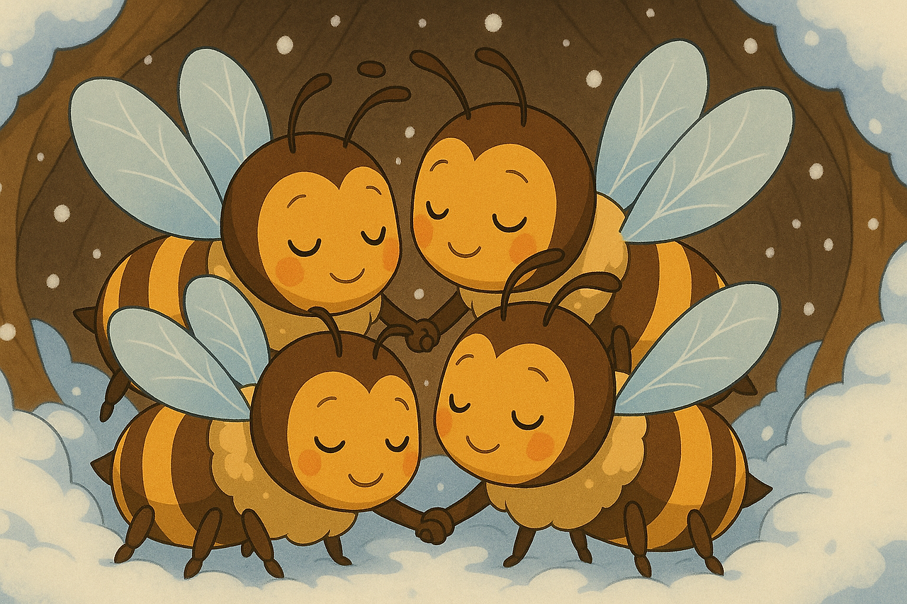 겨울은 벌에게 절대적인 시험이다. 추위와 마주하여 생명을 걸고 덤비는 싸움. 그들은 오직 생존을 위해 강박적으로 결집한다. 원형의 중심엔 여왕이 놓이고, 일벌들은 쉼 없이 교대하며 바깥의 냉기를 막아선다. 이 반복된 돌봄이 곧 생존의 근거다.