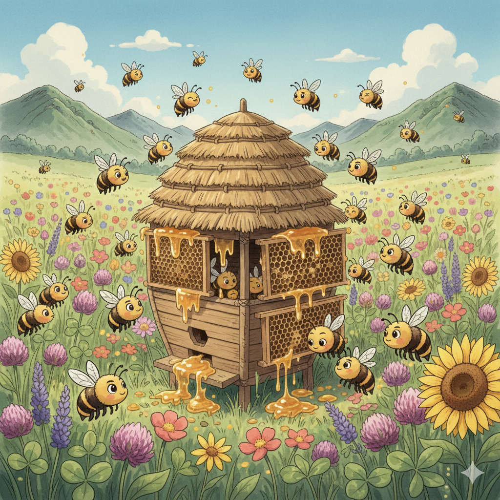 양봉 작업을 하다 보면, 꿀벌이 겸괘의 정신을 이미 생존의 조건으로 허용했음을 알게 된다. 꽃이 가득 피어나 꿀이 잔뜩 들어오는 계절. 때로 자신의 벌통이 다른 벌통보다 꿀이 가득 차고 개체 수가 번성해도, 꿀벌은 자만하지 않는다. 풍요란 언제든 기후 변화나 외부의 위협 앞에서 무너질 수 있음을 알기 때문이다.
